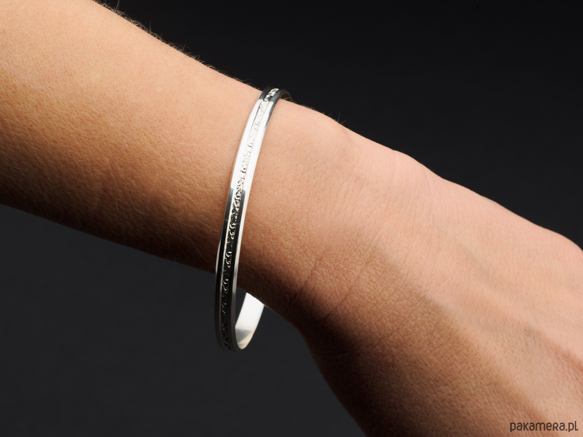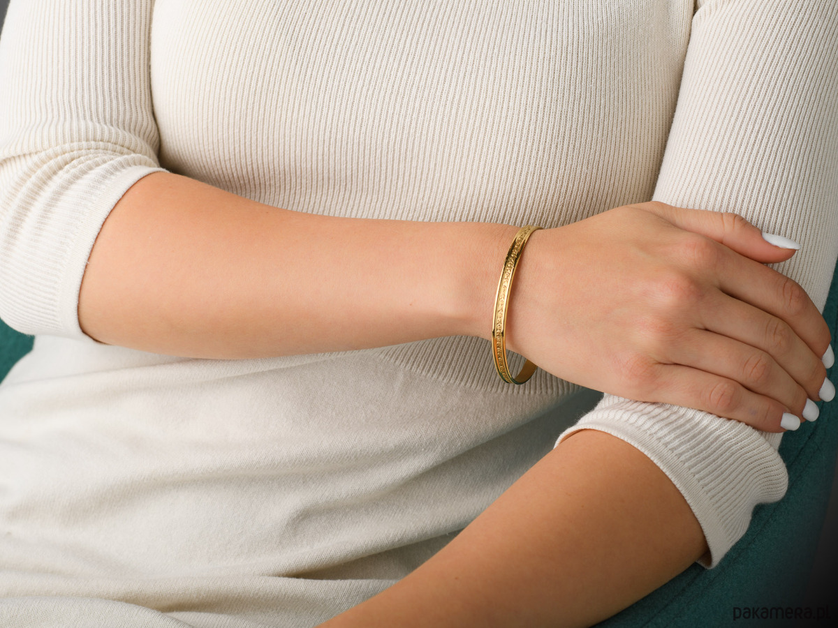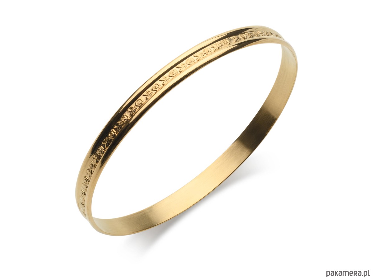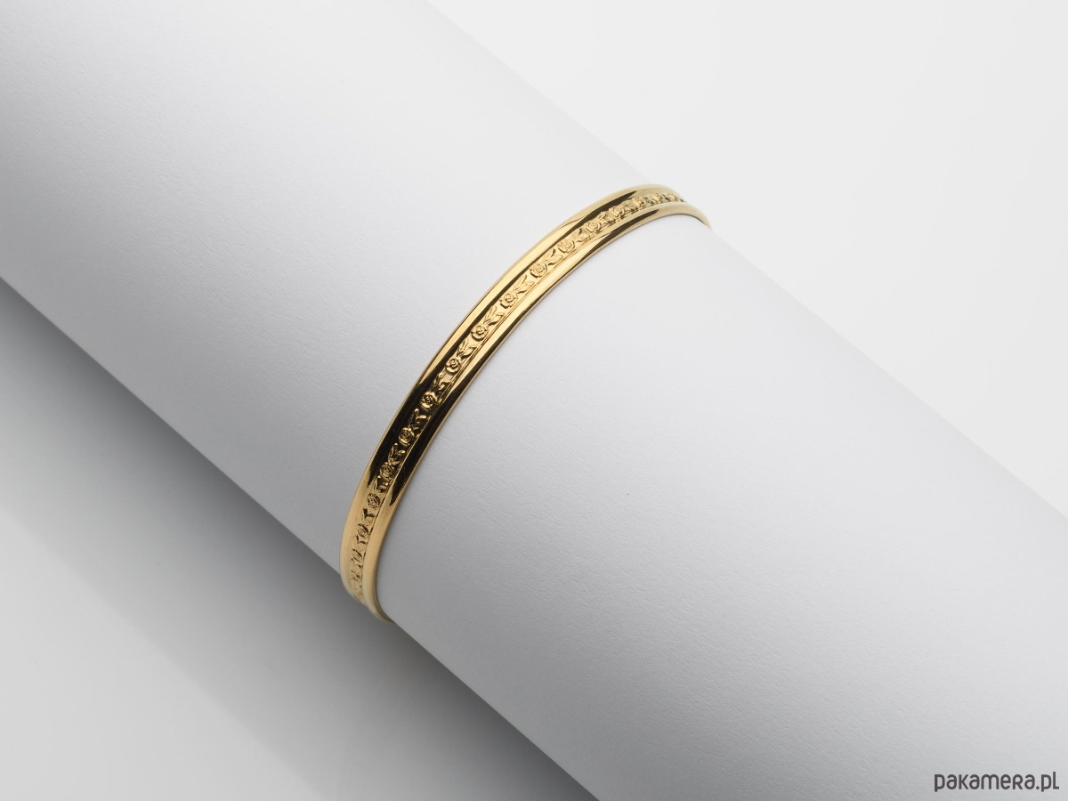 Bransoletka srebrna, pozłacana ręcznie robiona w formie kola z tłoczonymi wzorami kwiatowymi