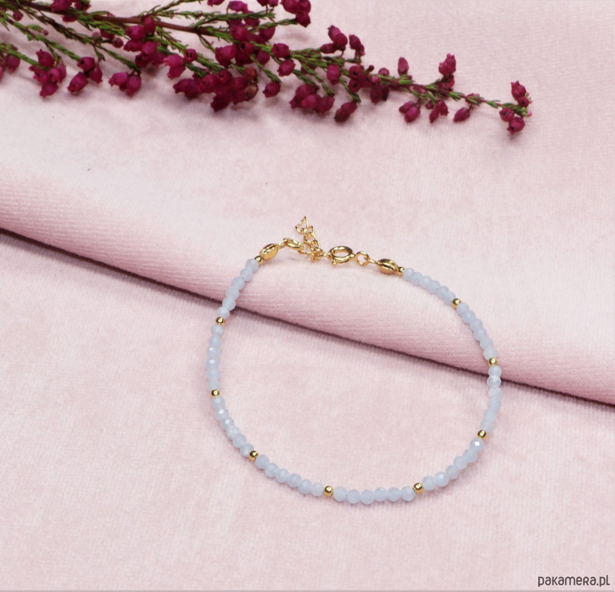 Pozłacana bransoletka z kamieni naturalnych – szlachetnego angelitu ze srebra najwyższej jakości.