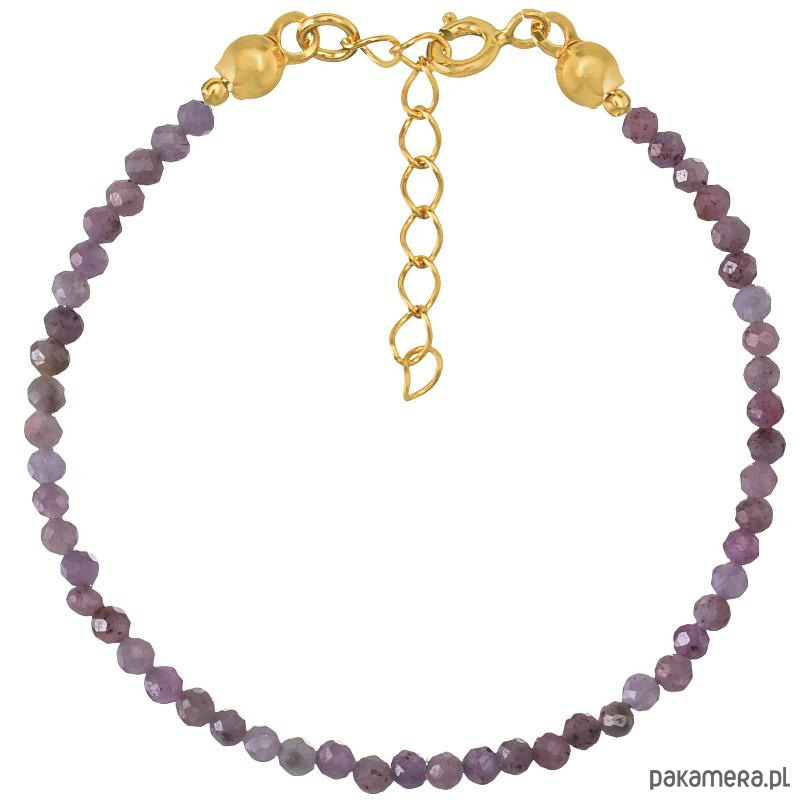 Bransoletka srebrna pozłacana z kamieni naturalnych rubiny 3 mm