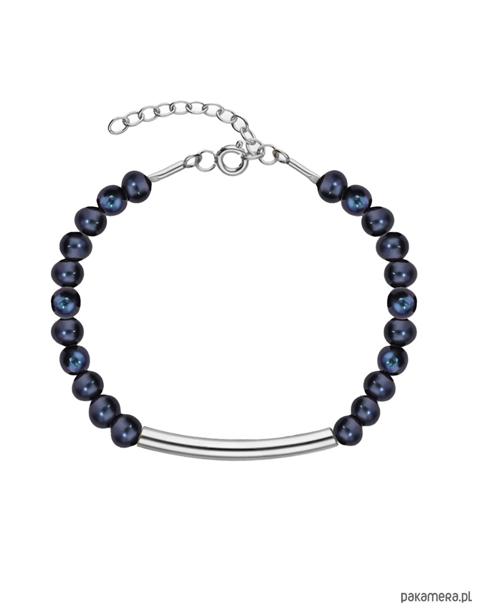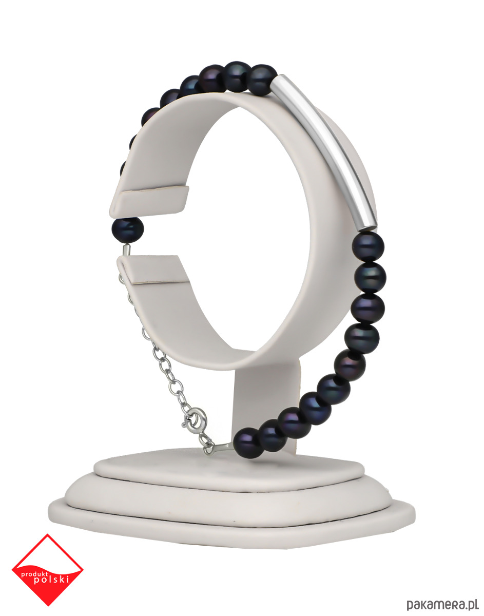 Bransoletka srebrna z czarnych pereł naturalnych z rurką
