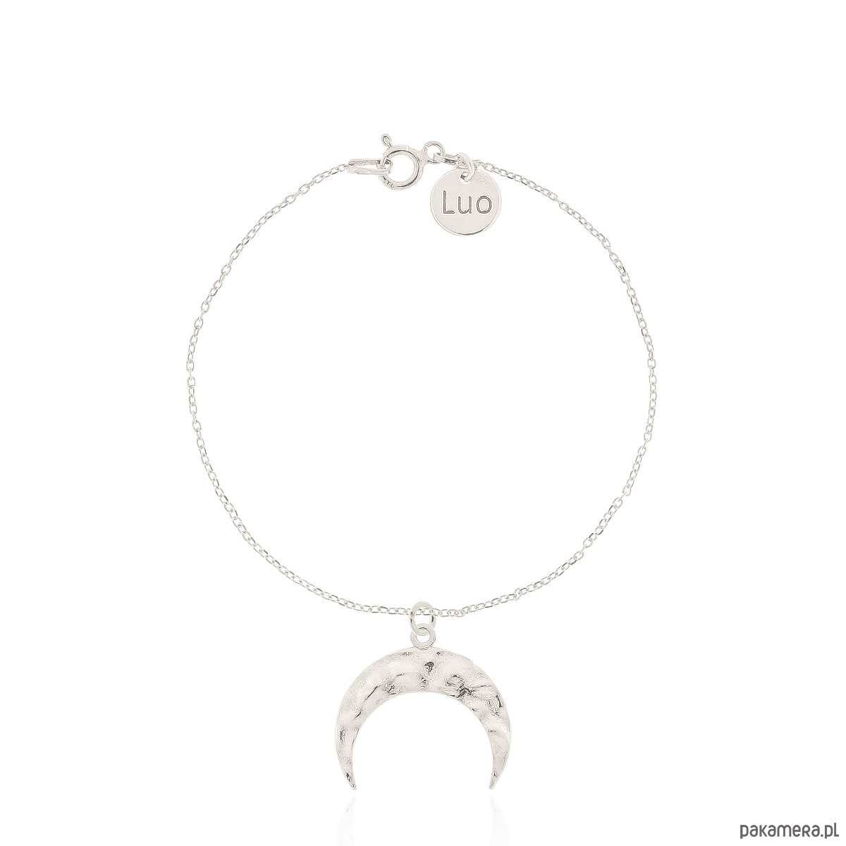 Bransoletka srebrna z dużym pofalowanym księżycem. Całość wykonana ze srebra 925.