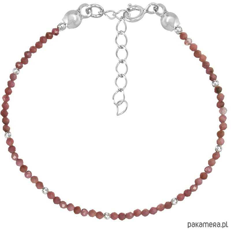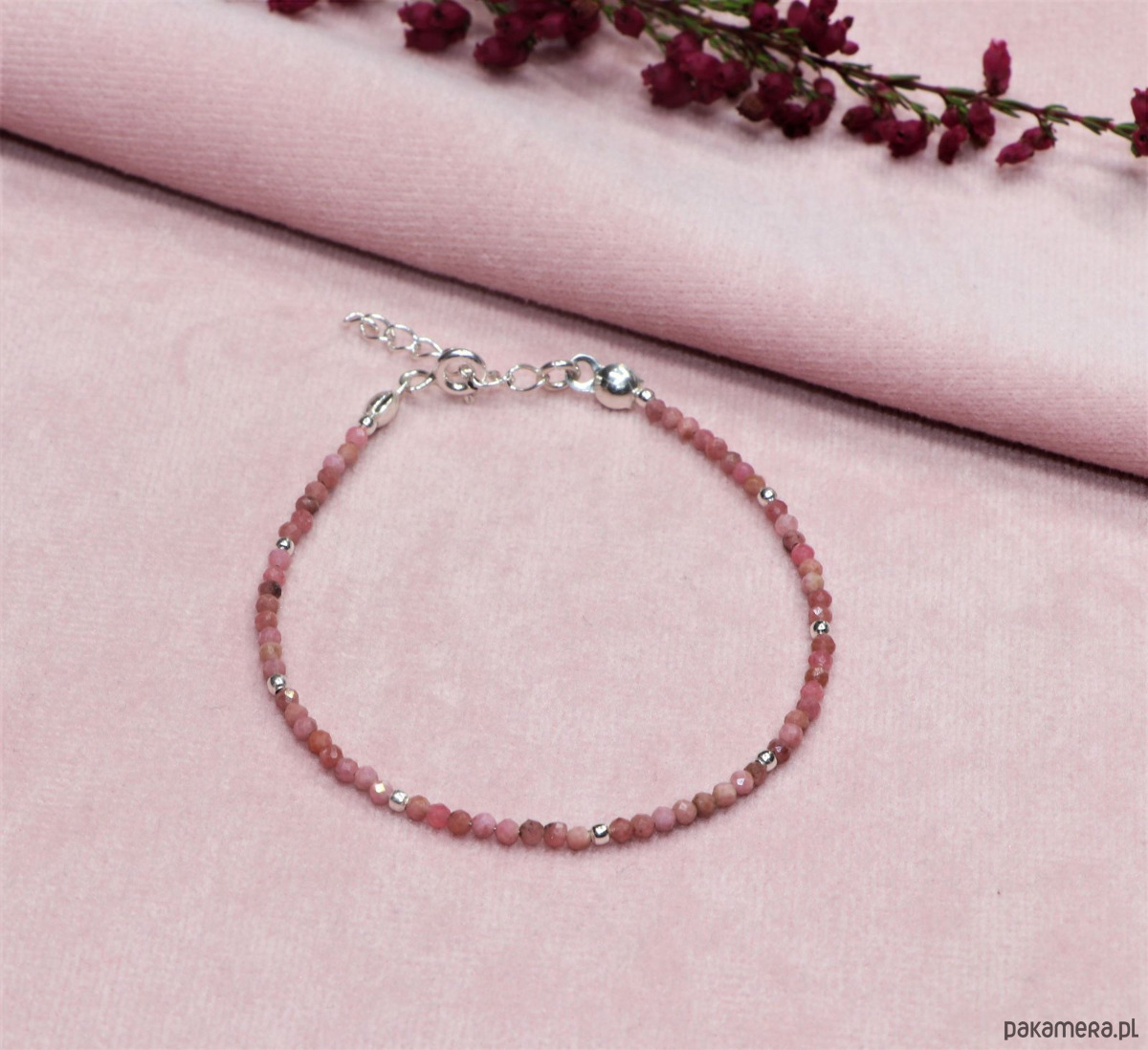 Bransoletka srebrna z kamieni naturalnych rodonit 2 mm