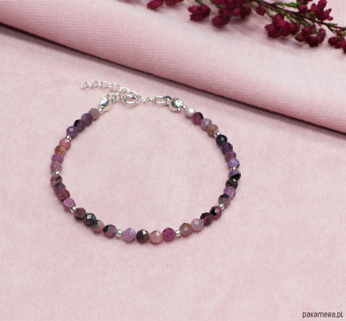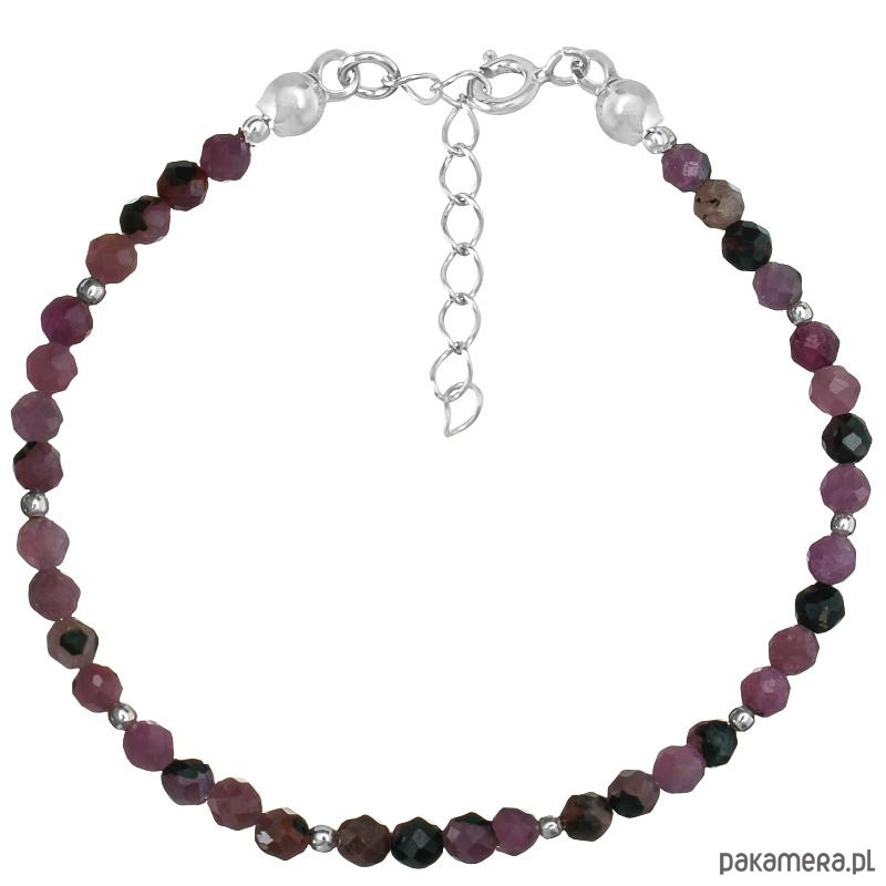 Bransoletka srebrna z kamieni naturalnych rubiny 3 mm
