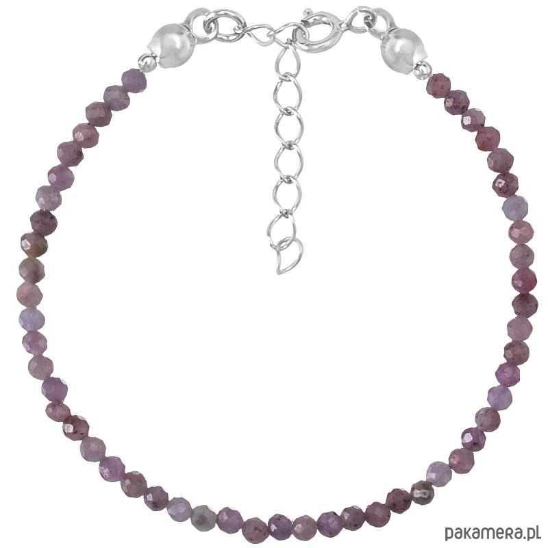 Bransoletka srebrna z kamieni naturalnych rubiny 3mm
