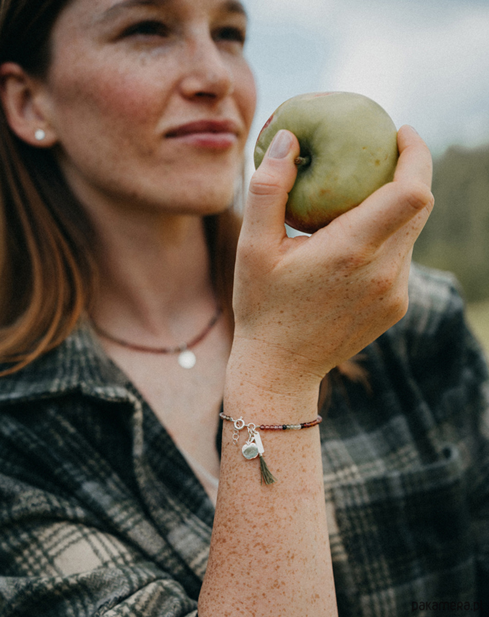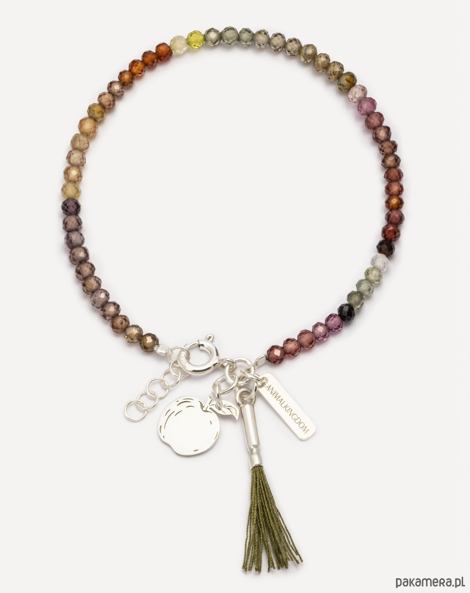 Unikatowe cieniowane szafiry w połączeniu z symboliczną zawieszką stworzą duet, który otuli Cię jesiennym ciepłem. Bransoletka będzie idealnym towarzyszem dla ulubionego jesiennego swetra zarzuconego na sukienkę, którą nosiłaś całe lato.