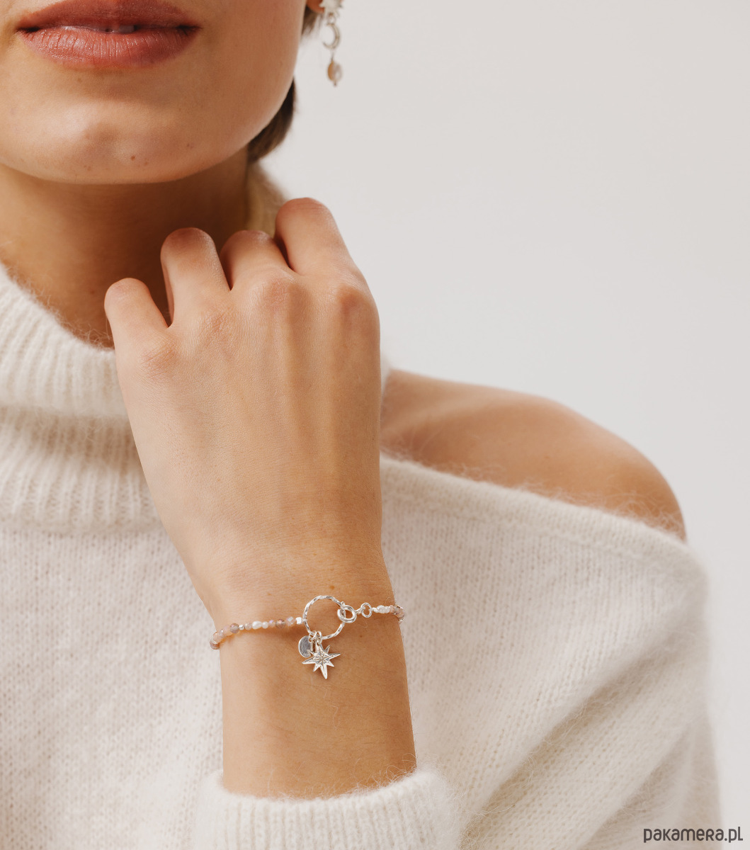 Ta bransoletka lubi robić wrażenie. Opalizujące kamienie naturalne układamy ręcznie w unikatowy wzór inspirowany dniem — w ciepłych, świetlistych odcieniach — lub nocą, w barwach ciemnego, rozgwieżdżonego nieba. W połączeniu z wybranym zimowym symbolem tworzą szlachetny duet, który dodaje stylizacji charakteru i elegancji.