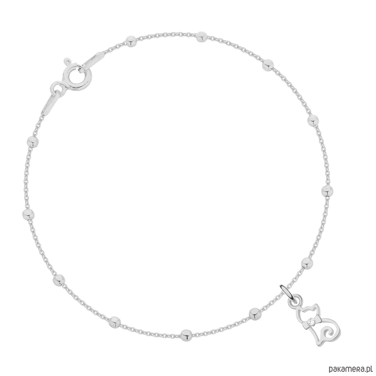 Piękna bransoletka ze srebra próby 925 z zawieszką w kształcie kotka z kryształkiem Swarovski.Długość bransoletki: 18 cmWielkość samej zawieszki: 12,5 mm.Biżuteria została w całości wykonana ze srebra próby 925 .