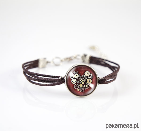 Grafika ukryta w delikatnej bransoletce pod osłoną przeźroczystego półokrągłego szkiełka.