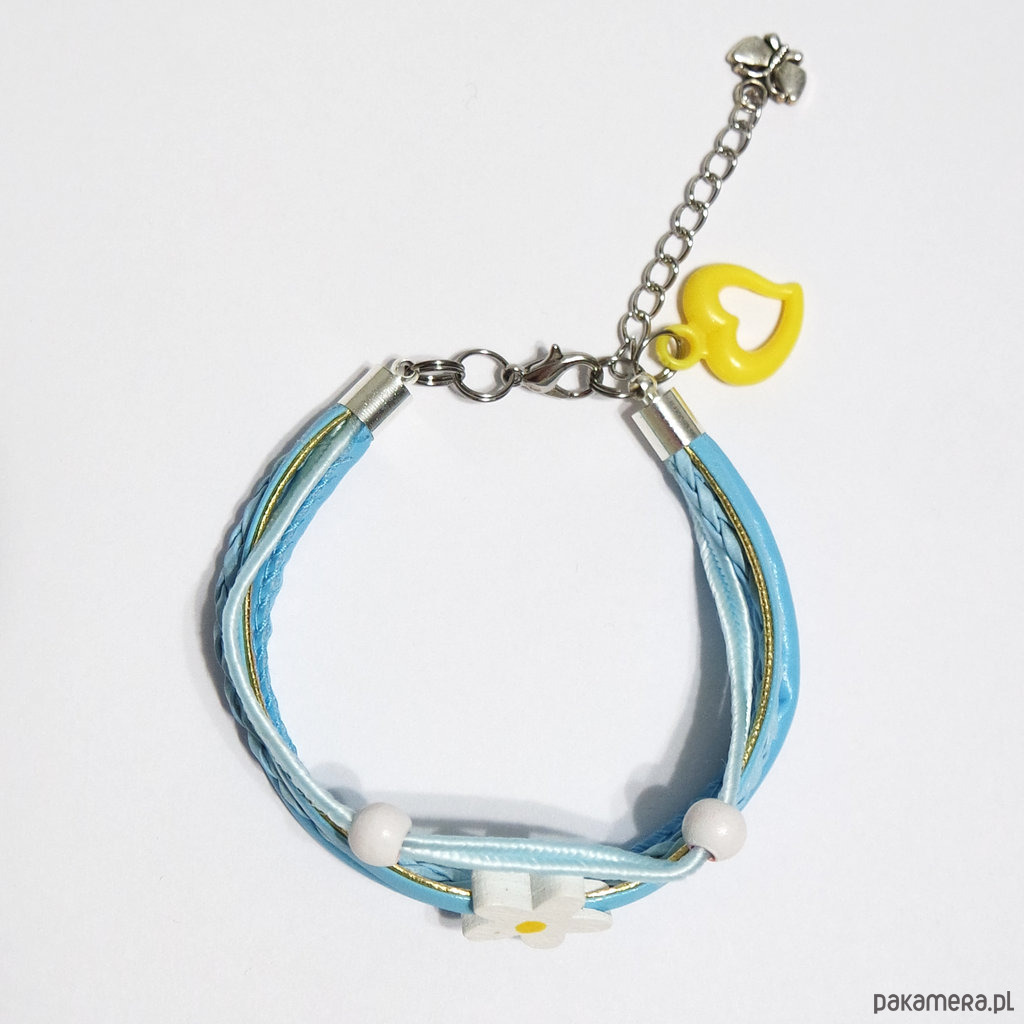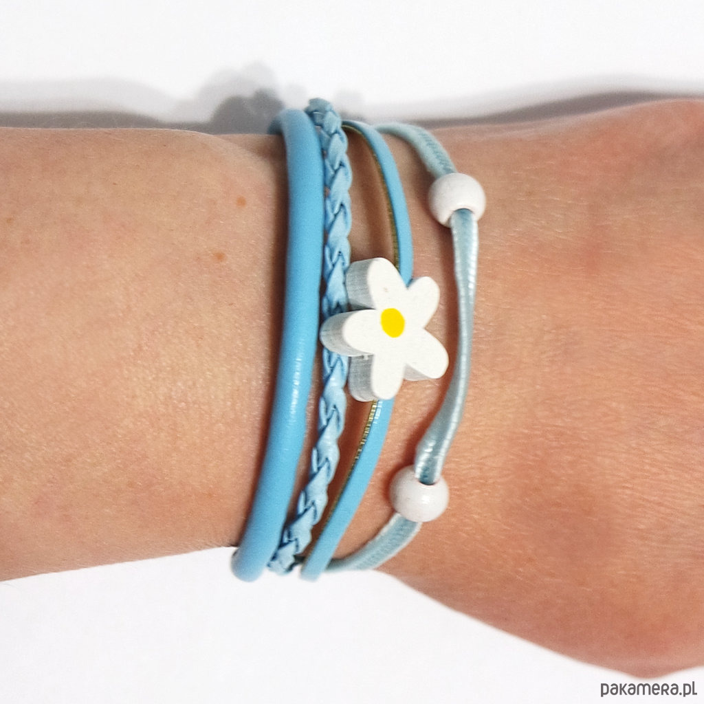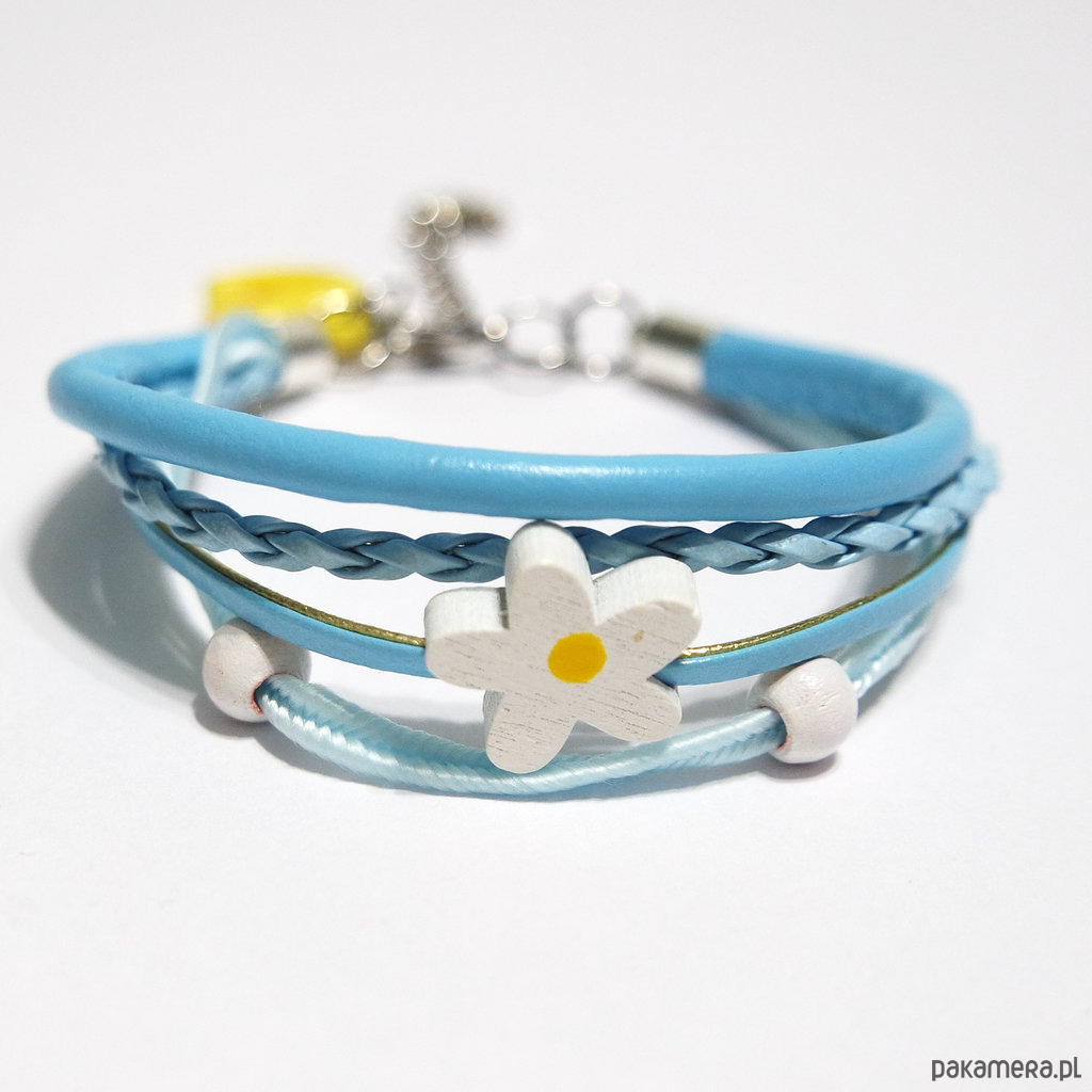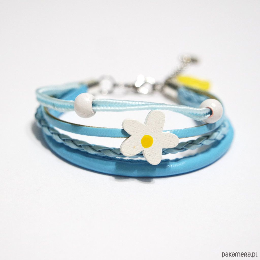 Bransoletka - Stokrotka - rzemienie, błękitna