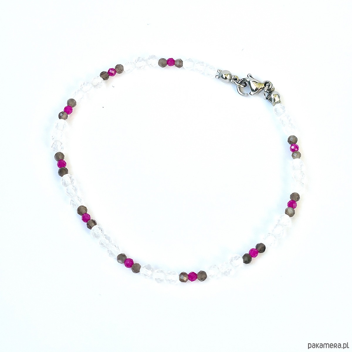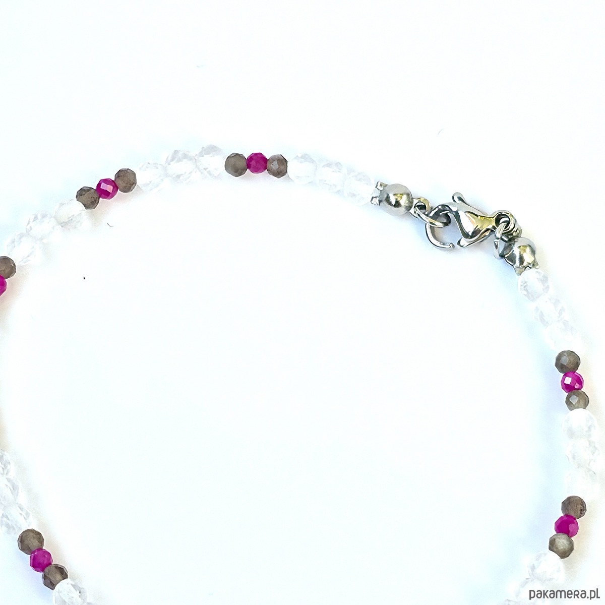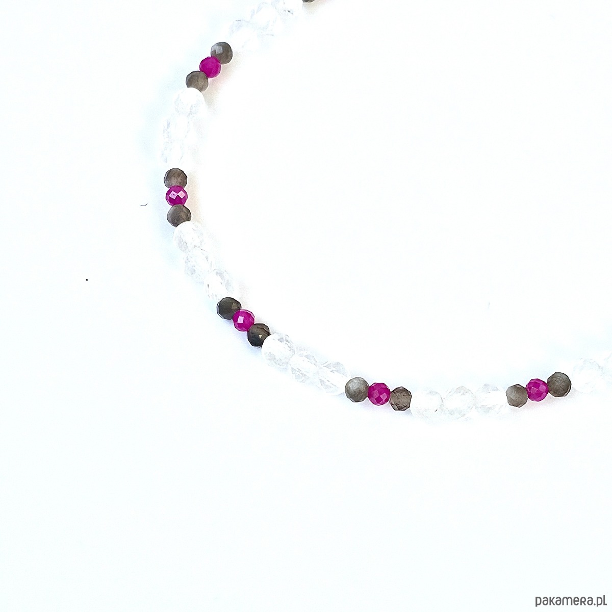 • Materiały: Rubin, Obsydian srebrzysty, Kryształ Górski, stal chirurgiczna, żyłka wędkarska Fluorocarbon.