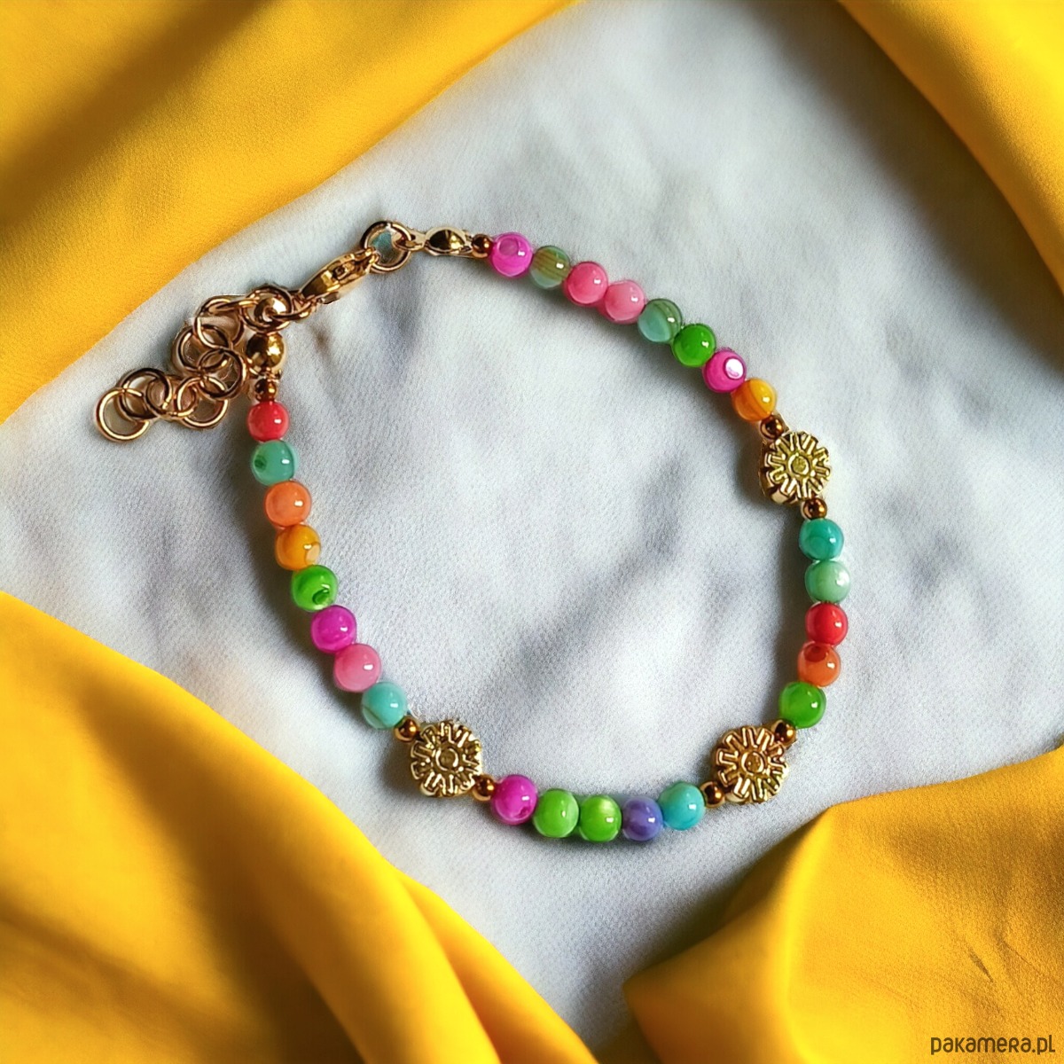 Bransoletka : summer collection : kolorowa muszla i kwiatuszki