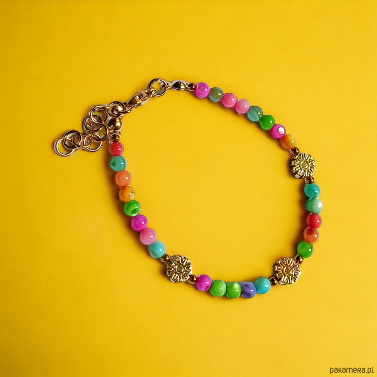 Bransoletka : summer collection : kolorowa muszla, kwiatuszki