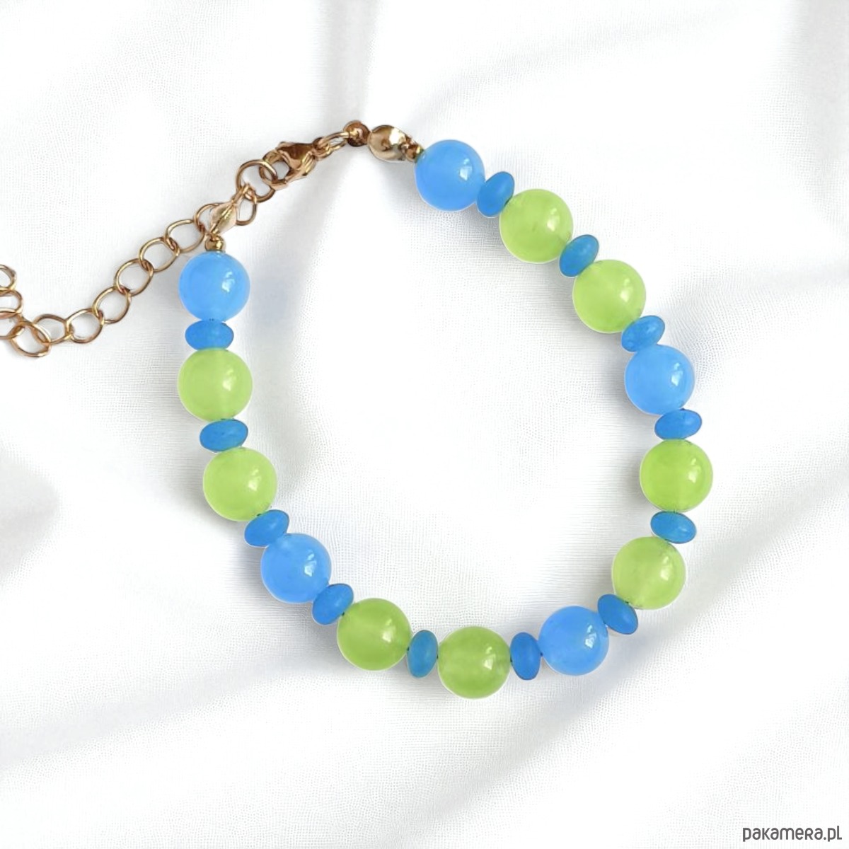 Efektowna bransoletka w soczystym połączeniu kolorystycznym: jasna limonka + niebieski.