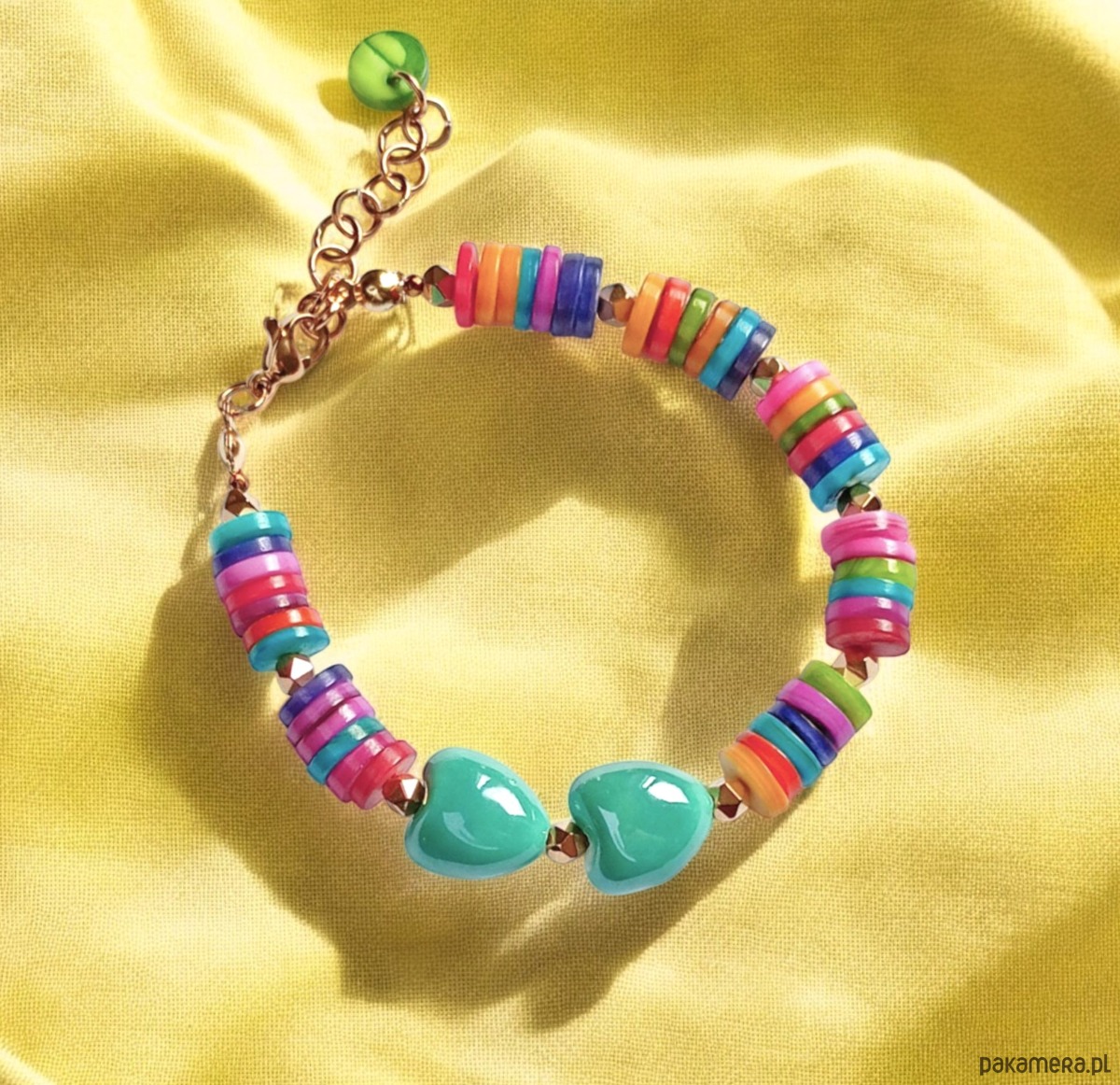 Bransoletka : SUMMER collection: masa perłowa i ceramiczne serduszka