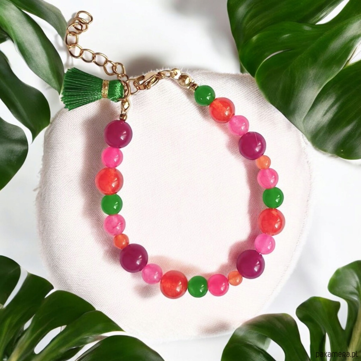 Efektowna bransoletka na solidnej lince jubilerskiej - została wykonana w całości z kamieni naturalnych - soczystego jadeitu (kule 8, 6 i 4mm).
