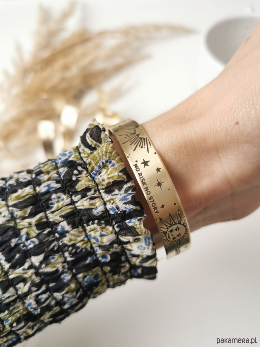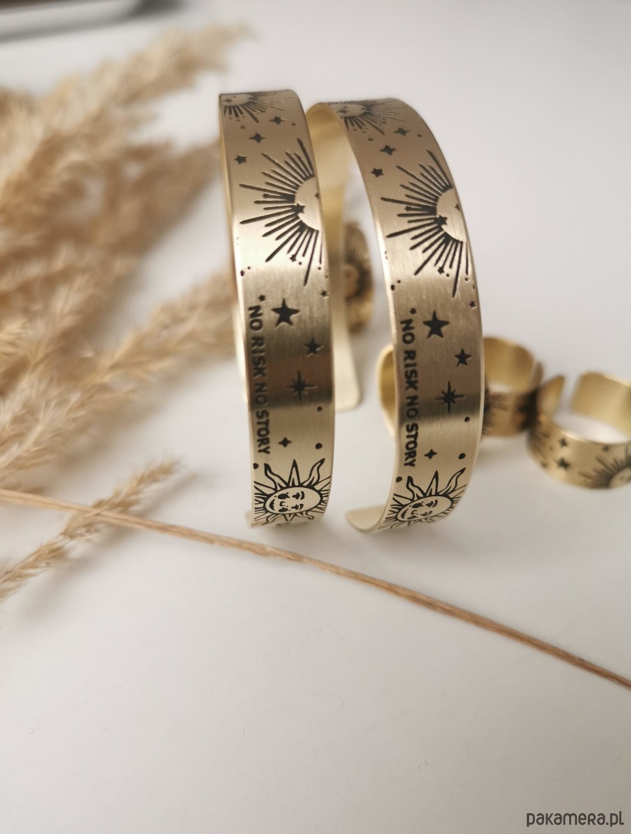 Nowa bransoletka ma kolor jasno złoty, wraz z upływem czasu mosiądz nabiera szlachetnej barwy starego złota.