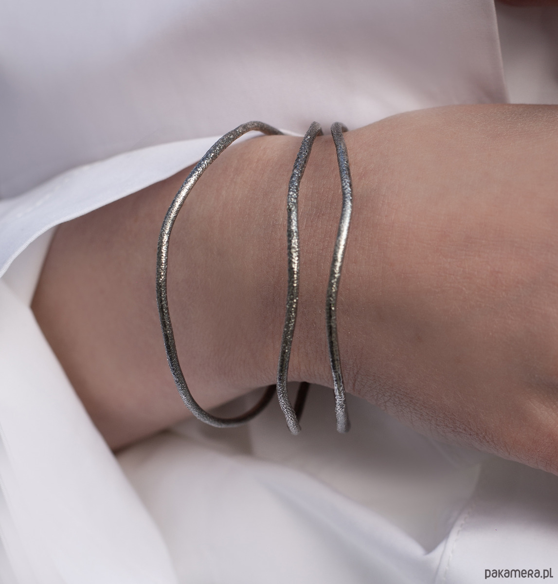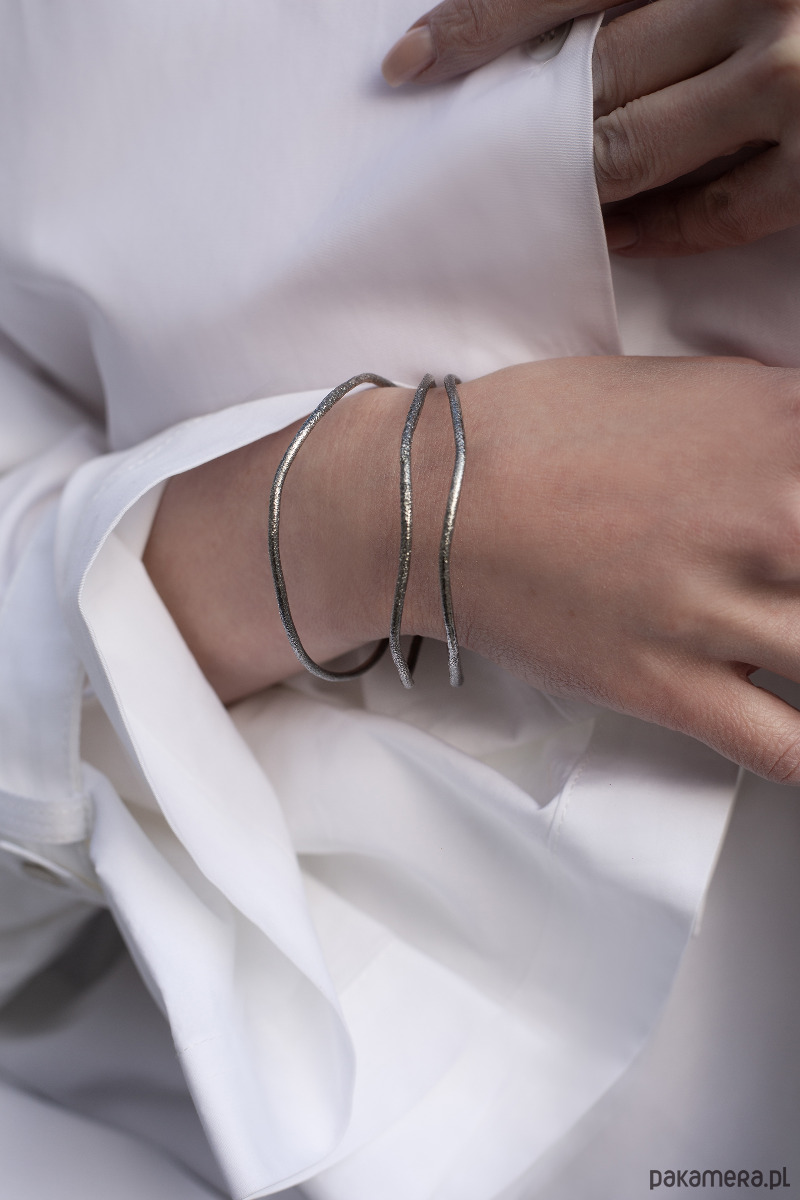 Surowe srebro, flamowane, patynowane i szczotkowane.