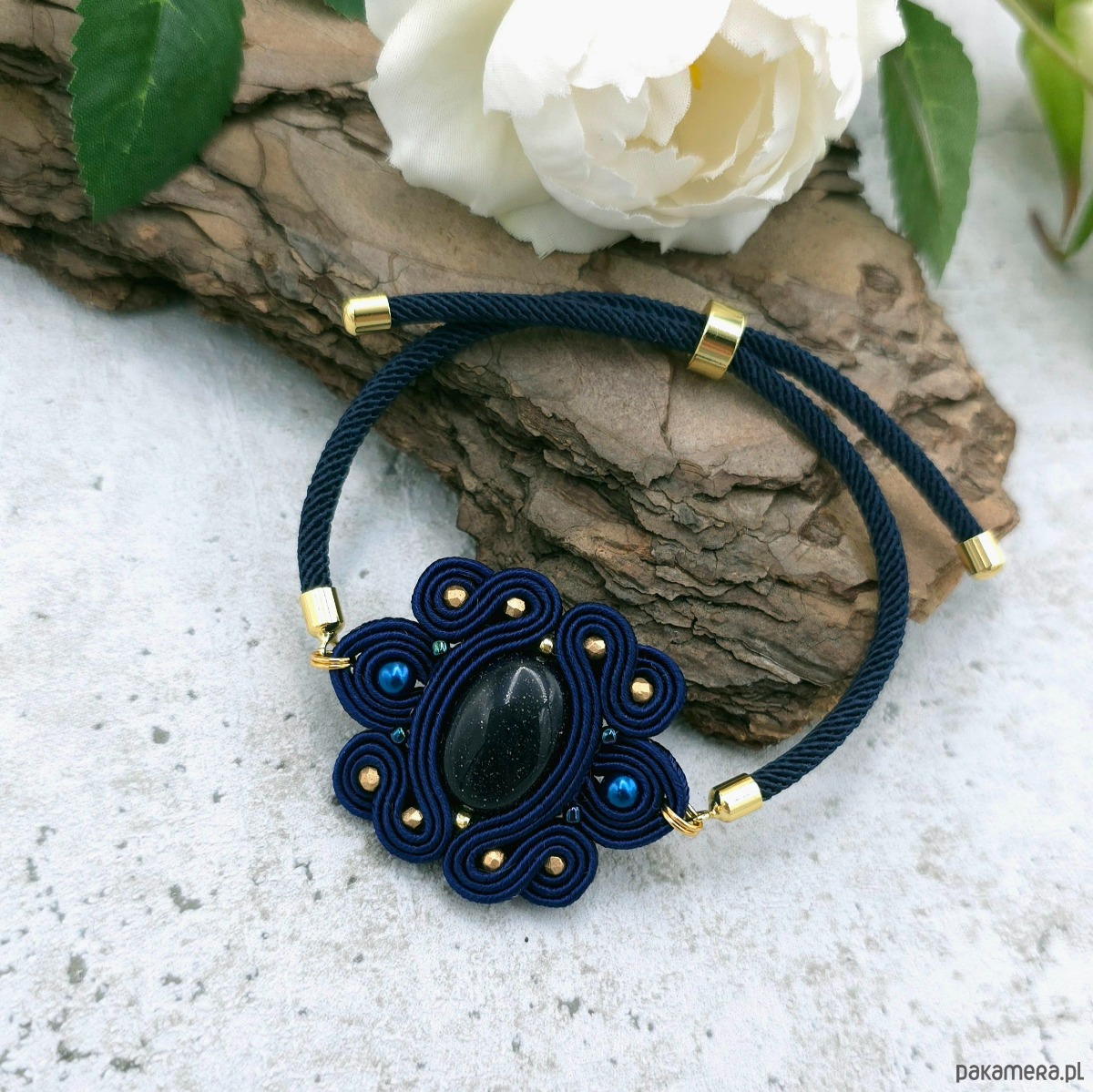 Bransoletka sutasz z nocą kairu regulowana granatowa lekka