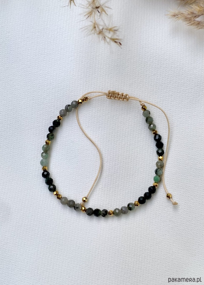 Wykonana ręcznie na delikatnym, beżowym sznurku, nasza bransoletka zapewnia nie tylko wyjątkowy wygląd, ale także komfort noszenia i dopasowuje się do różnorodnych stylizacji. Bez względu na to, czy nosisz ją na co dzień czy też na specjalne okazje, bransoletka szmaragdowa na sznureczku dodaje Twoim outfintom niepowtarzalnego uroku i charakteru.