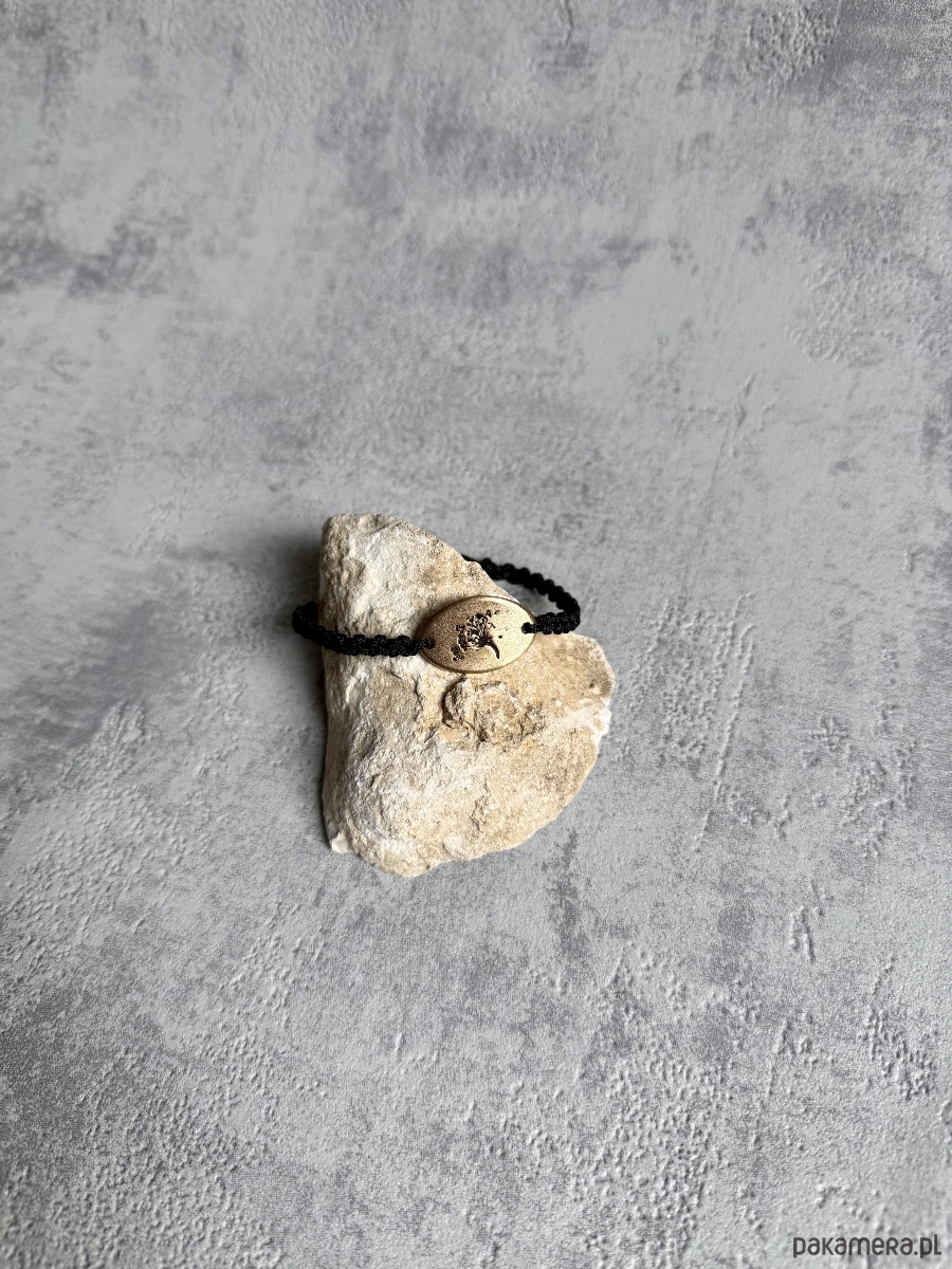 Bransoletka zaplatana jest ręcznie. Splot pozostaje miękki i wygodny w noszeniu, a zapięcie na guzik i pętelkę stabilnie utrzymuje ją na nadgarstku. Sznurek nie rozciąga się i dobrze znosi codzienne użytkowanie.