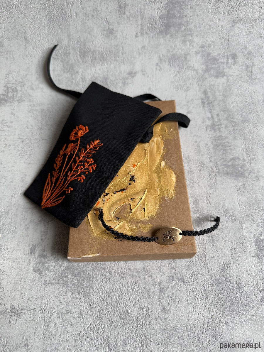 Bransoletka sznurkowa i odcisk rośliny w brązie