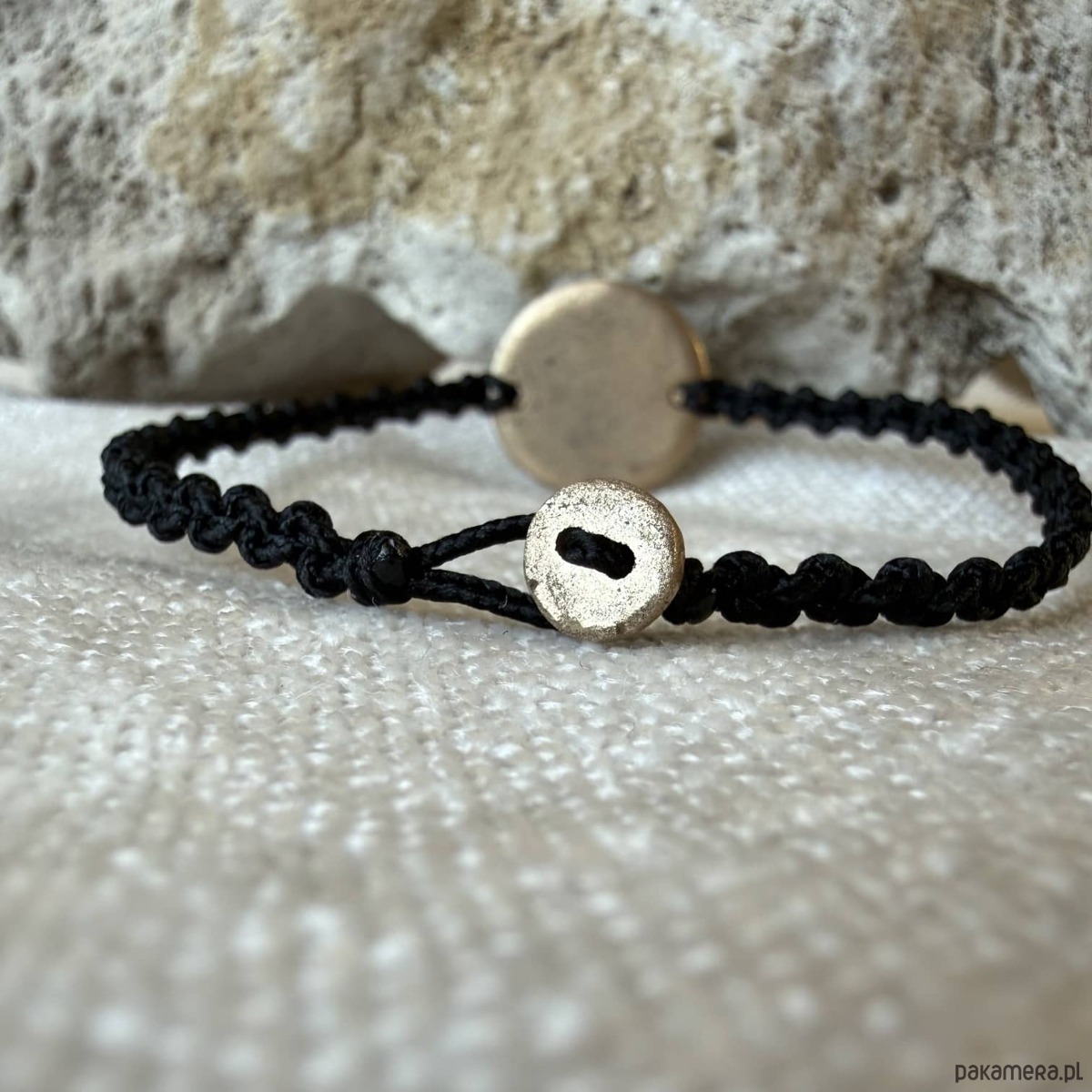 Zapięcie na guzik i pętelkę oraz ręcznie zaplatany sznurek sprawiają, że bransoletka jest miękka i wygodna w noszeniu, a jednocześnie trwała - sznurek nie rozciąga się i długo zachowuje swój wygląd.