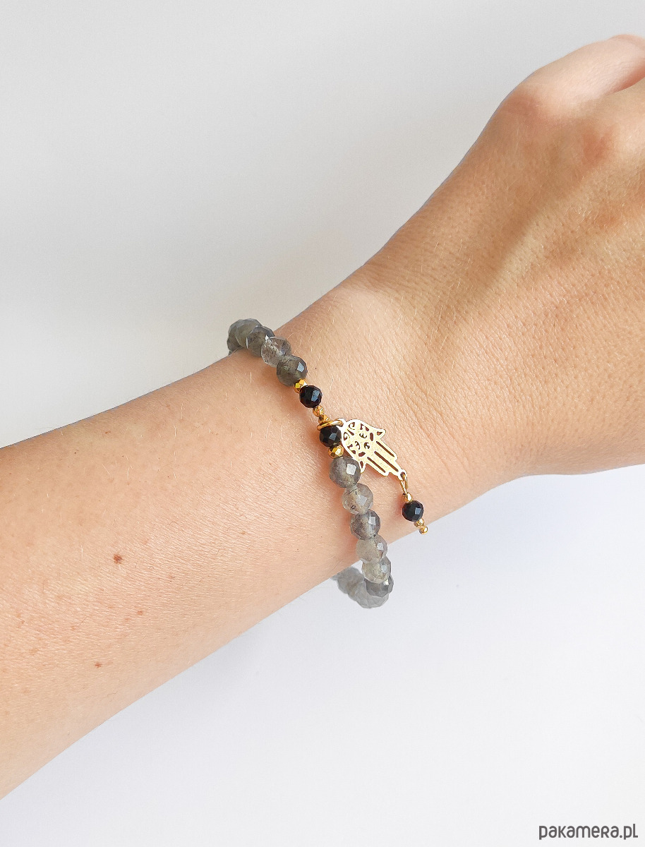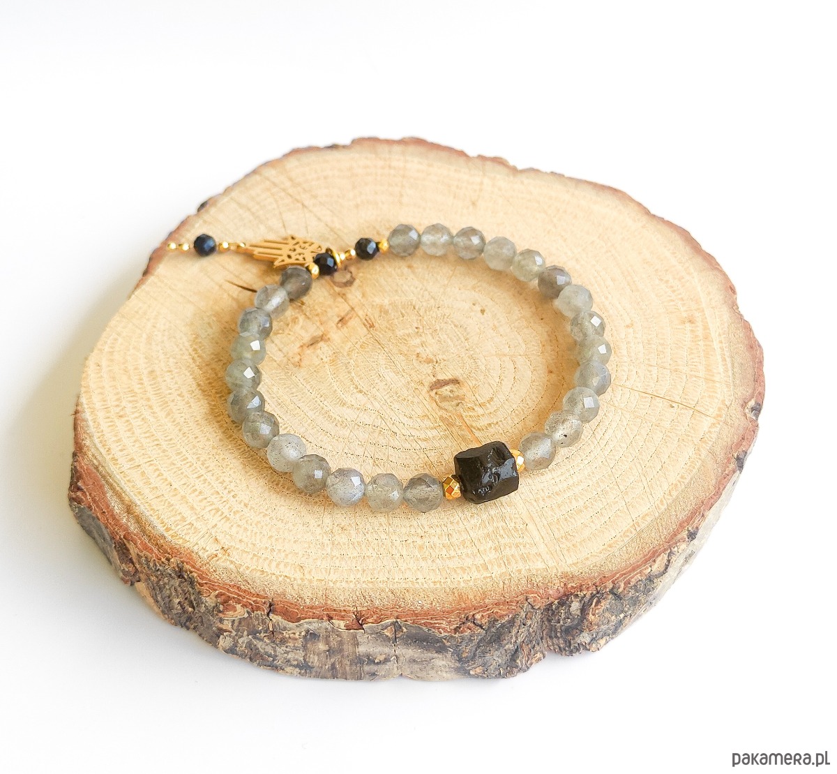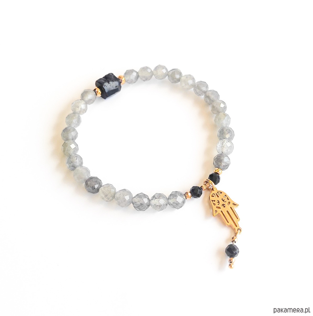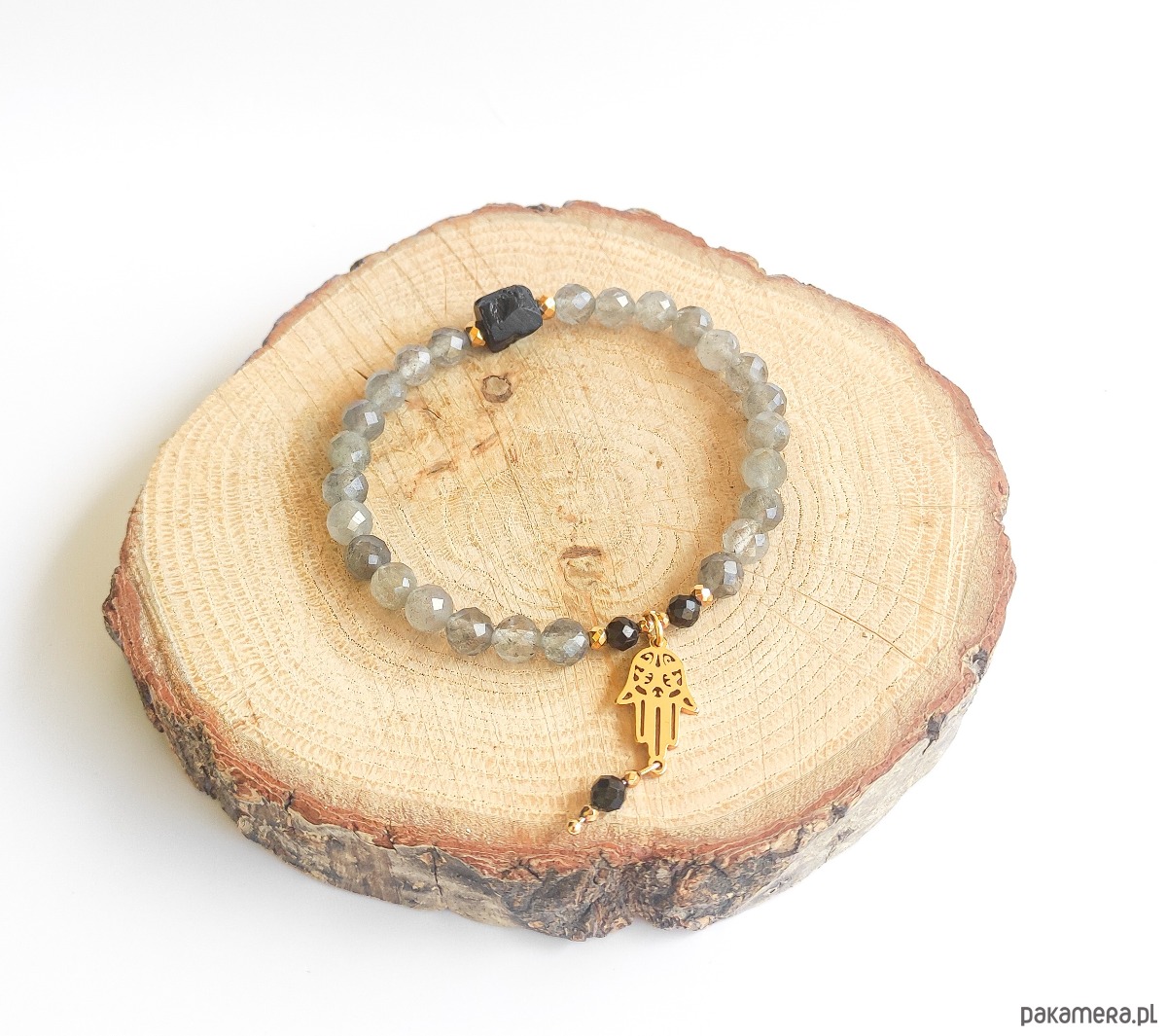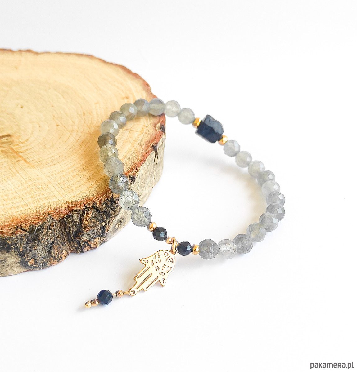Bazą bransoletki jest labradoryt - kamień mistyków, wspierający w komunikacji ze wyższym "ja" oraz otwierający umysł na nowe koncepcje i idee.