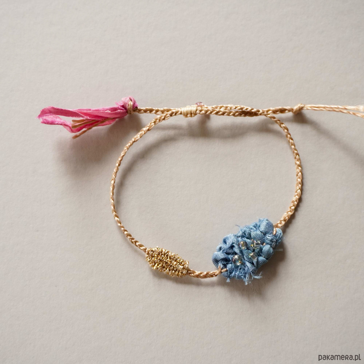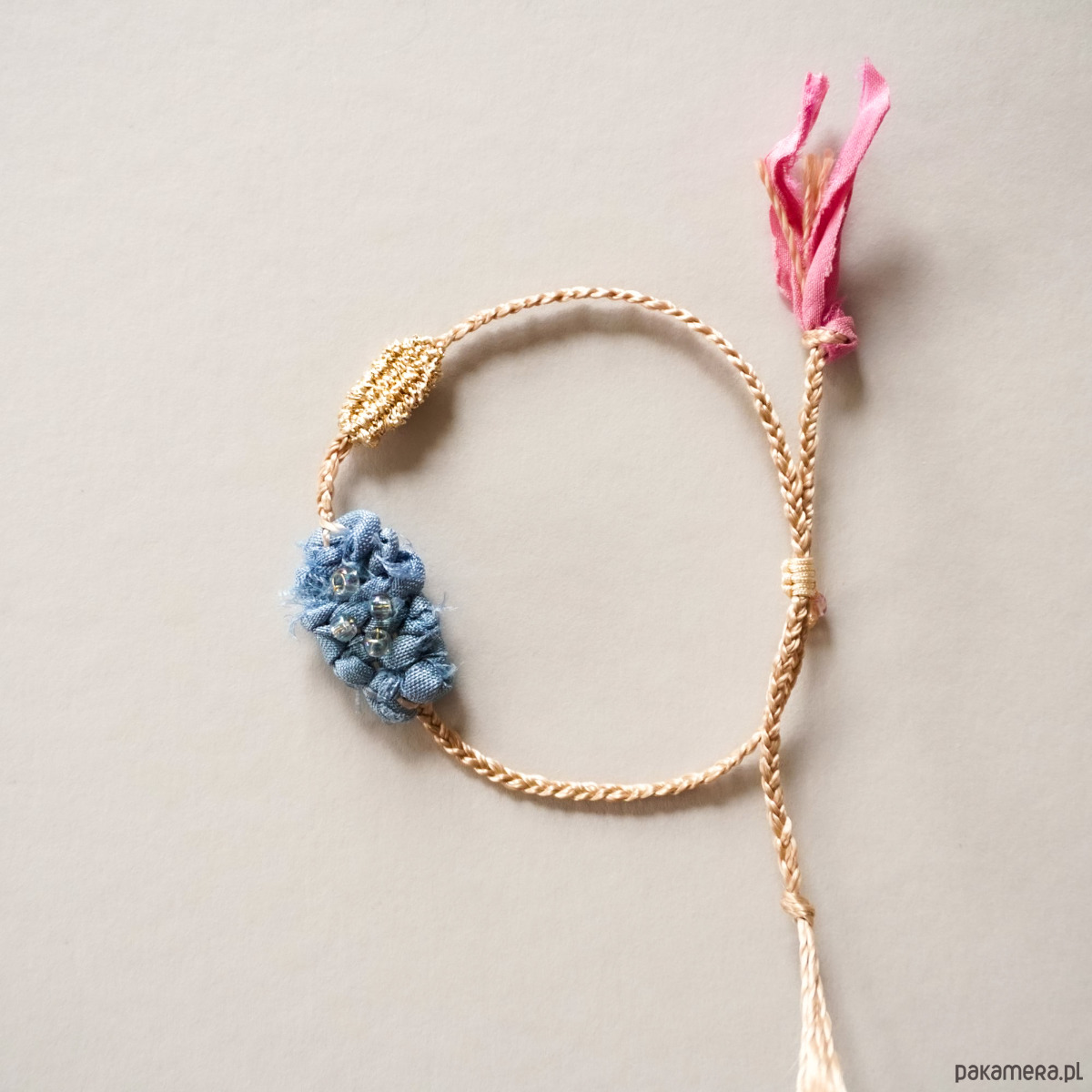 Bransoletka tkana - 2 elementy, z jedwabiem i koralikami