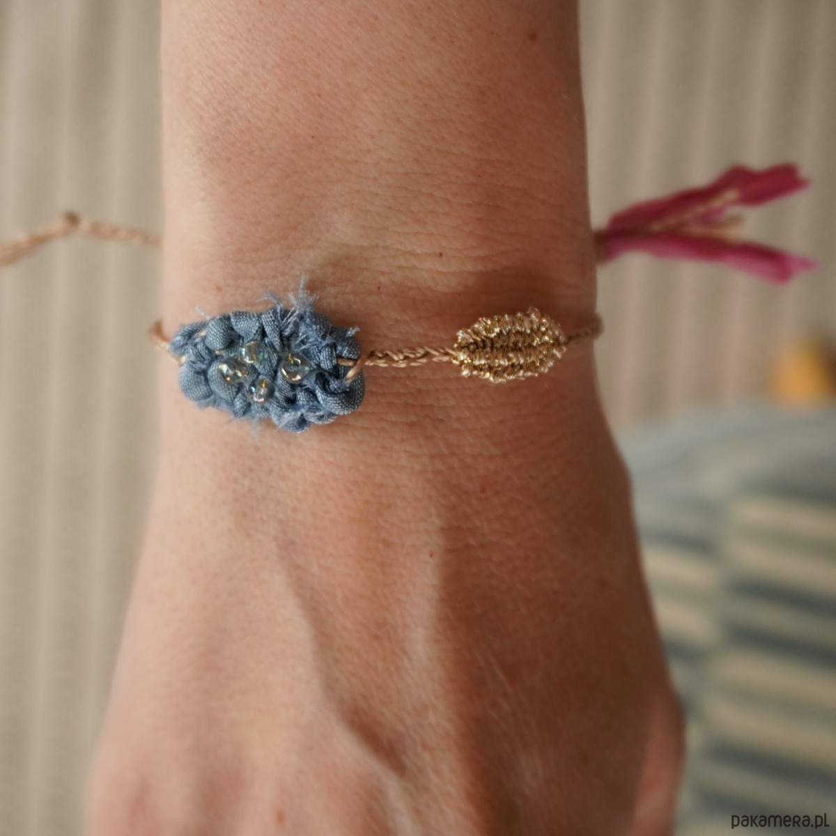 Edycja limitowana. Przedstawiam bransoletkę ręcznie robioną, która jest nie tylko prześliczna ale przed wszystkim naprawdę unikatowa. Kolorystyka świeża, chłodna, wiosenna 🌿. Bransoletka składa się z elementów ręcznie tkanych umiejscowionych na sznureczku. Jest to mój autorski pomysł i został zgłoszony do Urzędu Patentowego. Zapięcie jest makramowe, umożliwia wygodną regulację :). Zapraszam serdecznie :)