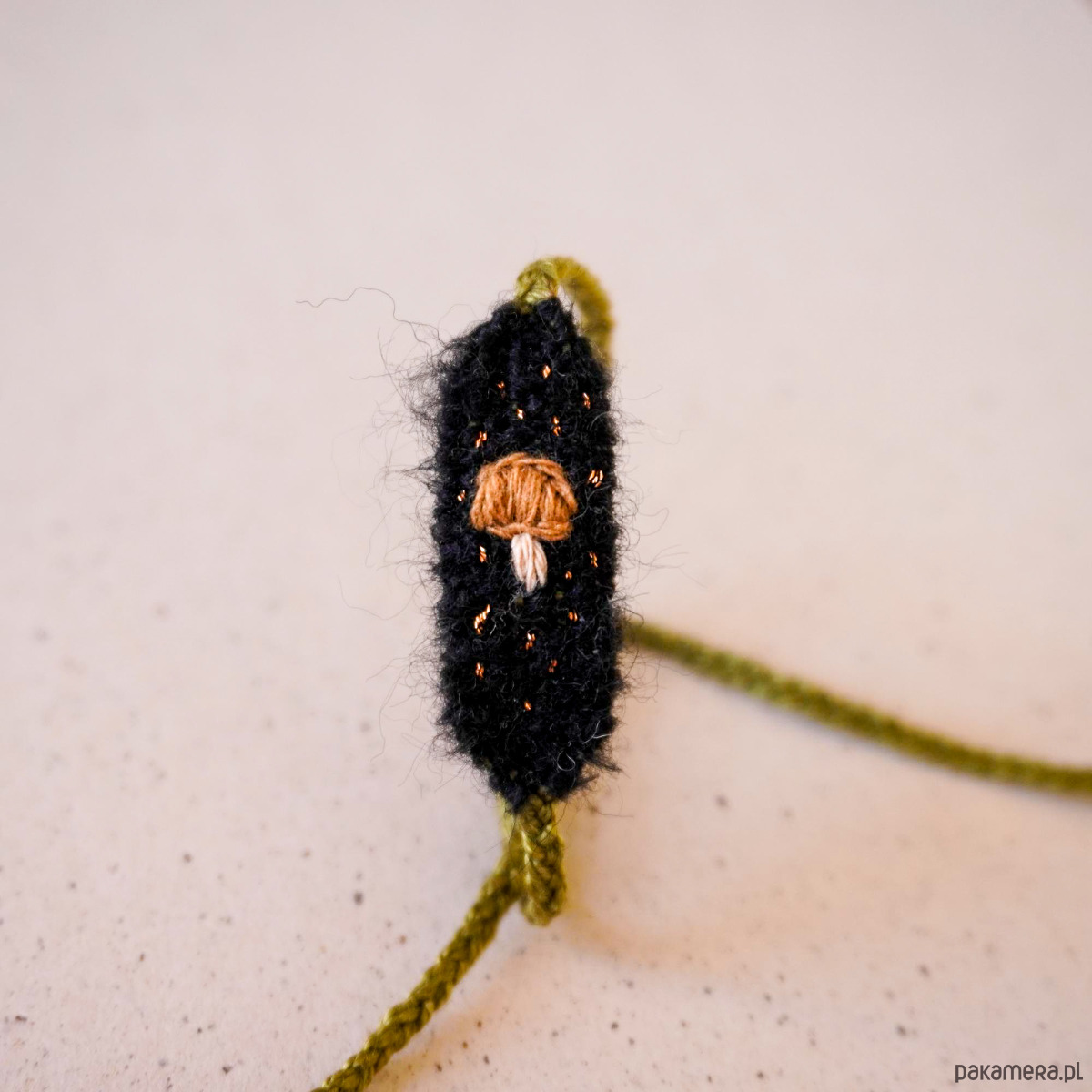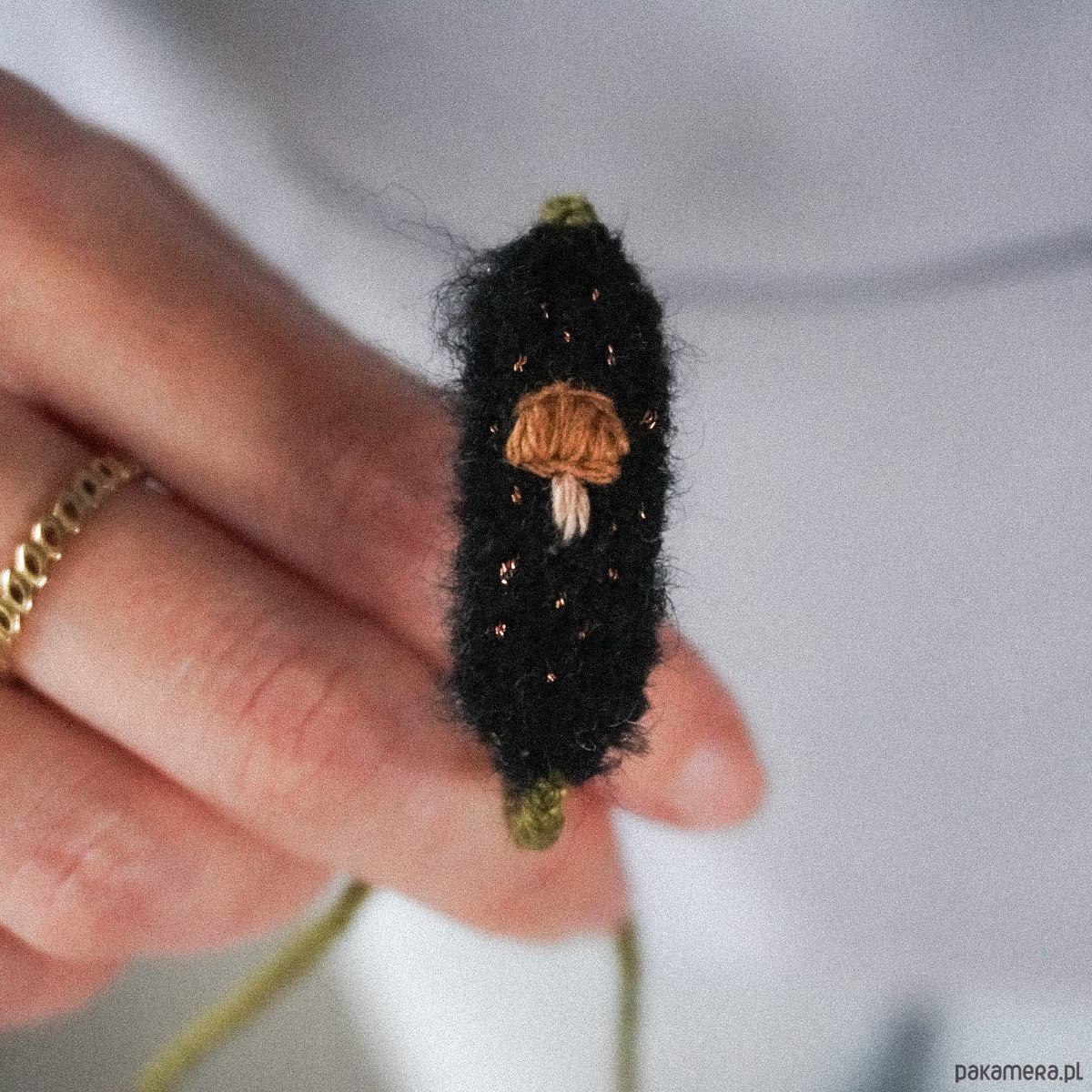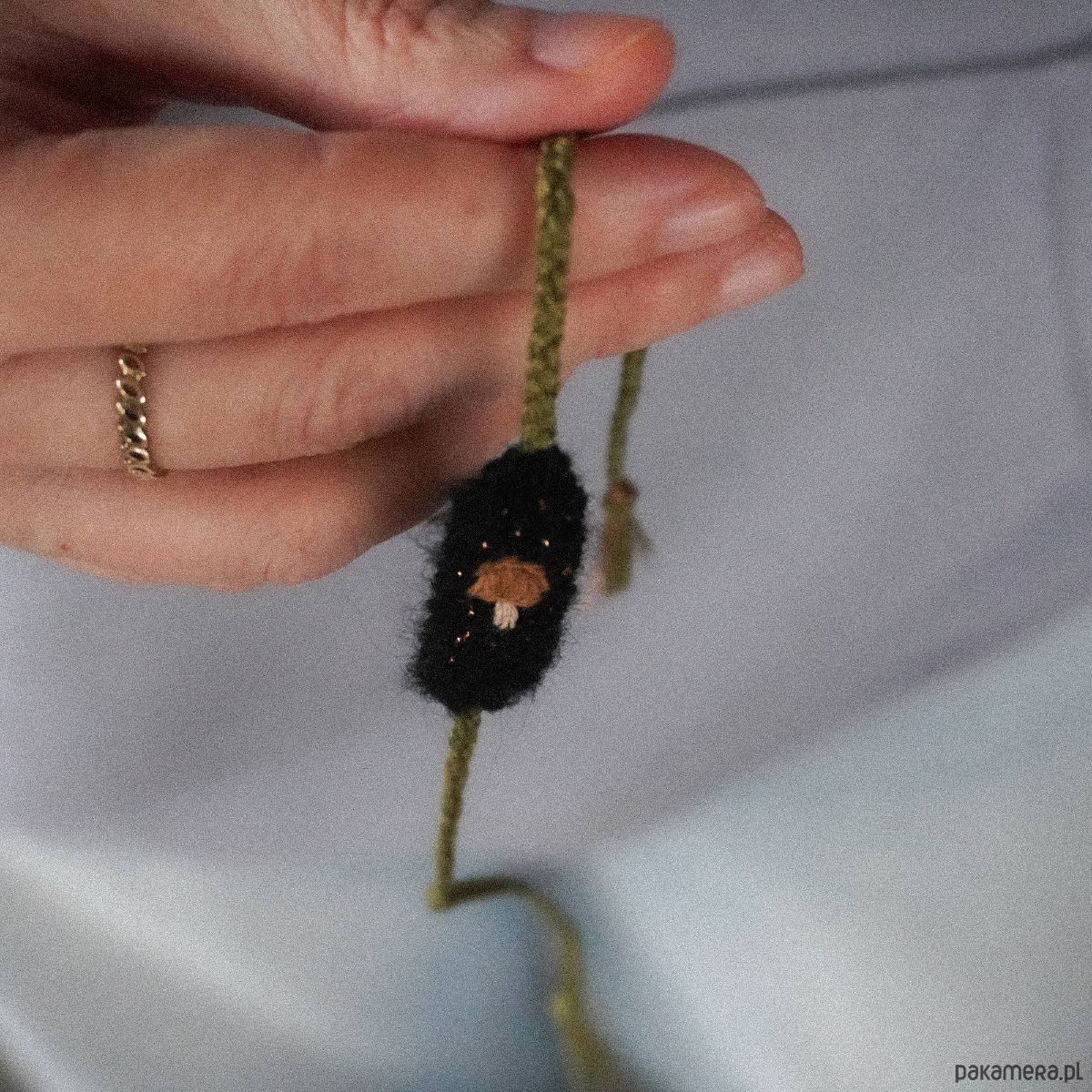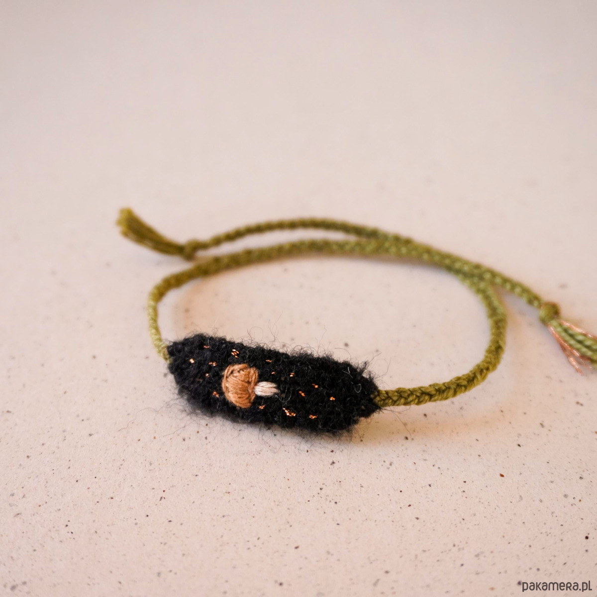 Uniaktowa bransoletka tkana i haftowana ręcznie z grzybkiem . To idealny dodatek dla jesieniary :)))Część tkana ma około 4 cm długości, około 1 cm szerokości. Bransoletkę wiążemy samodzielnie, dość mocno na supełek.