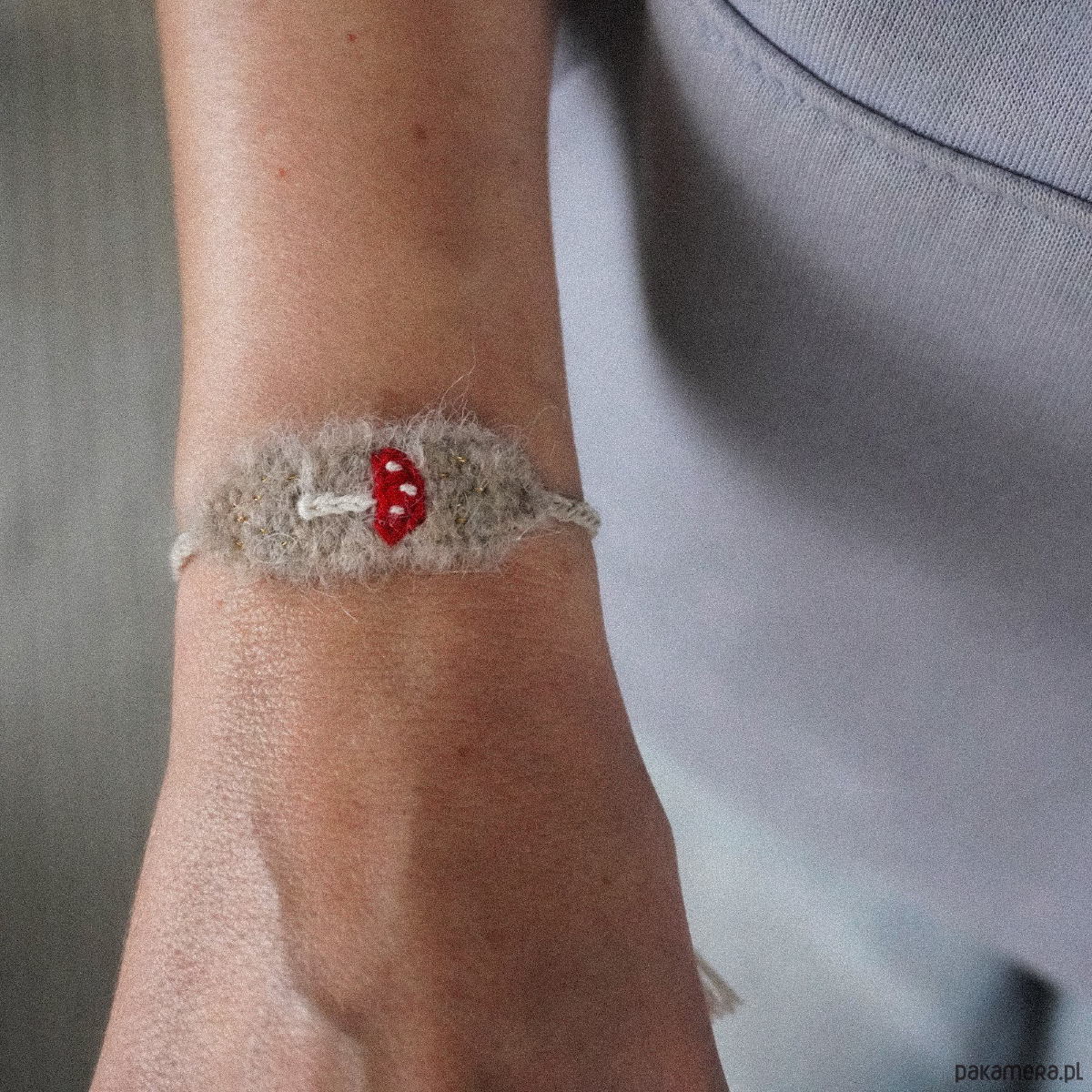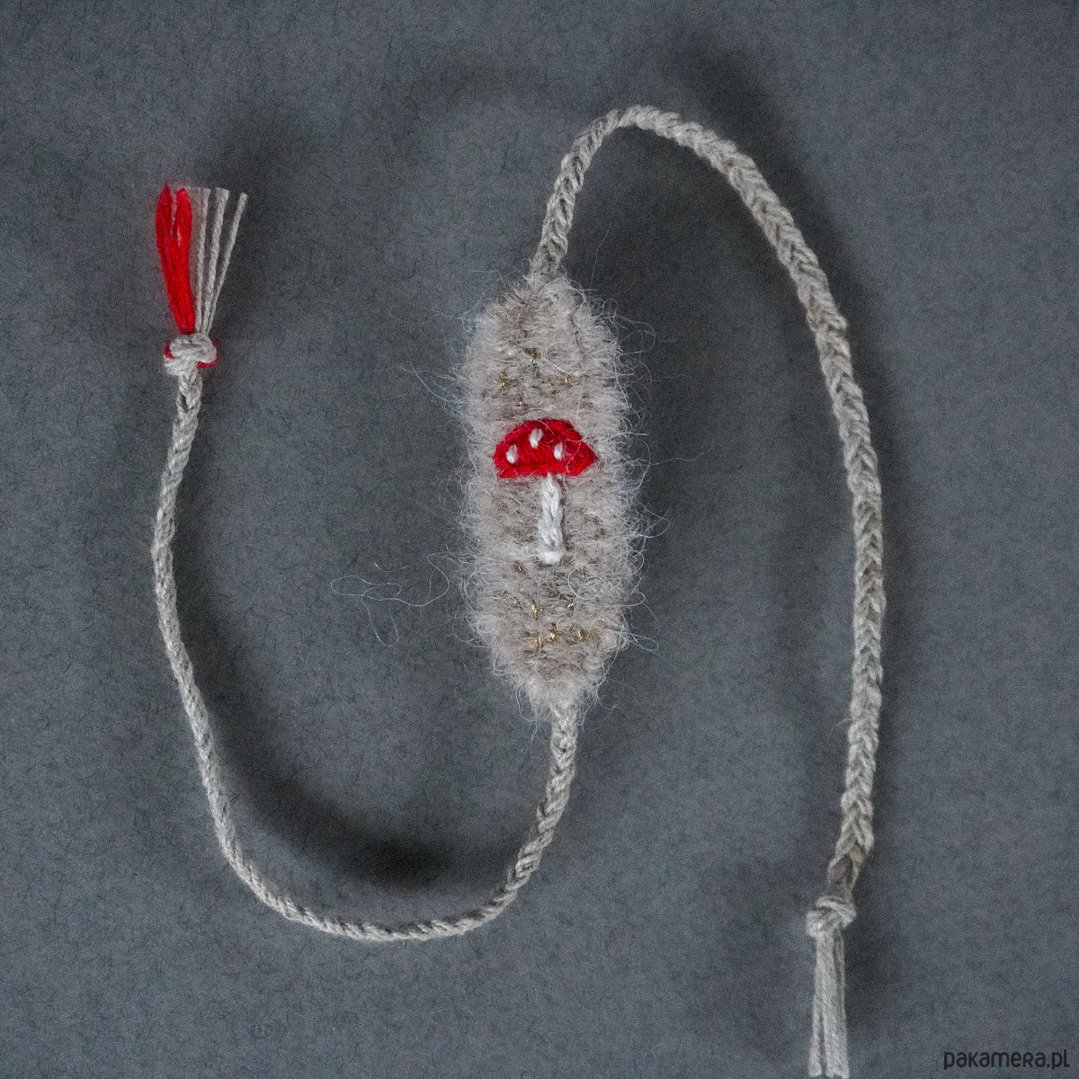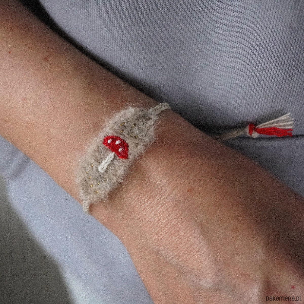 Bransoletka tkana i haftowana ręcznie - muchomorek