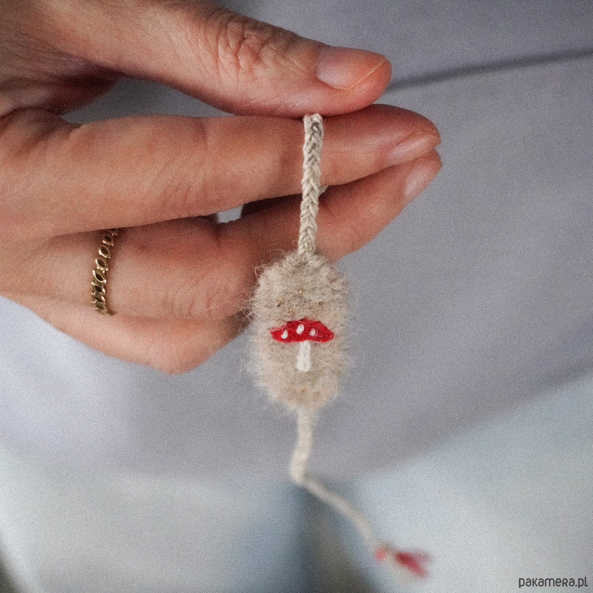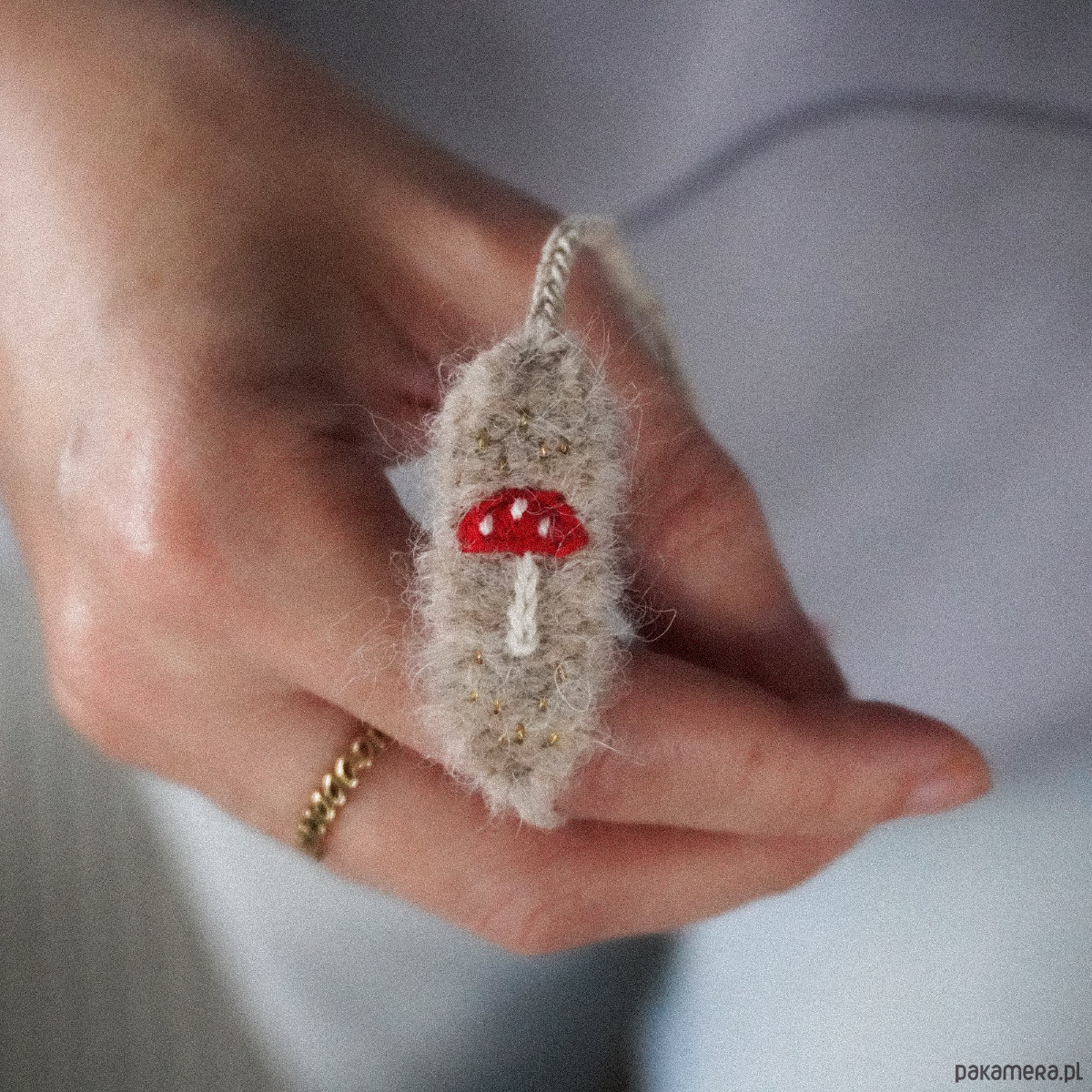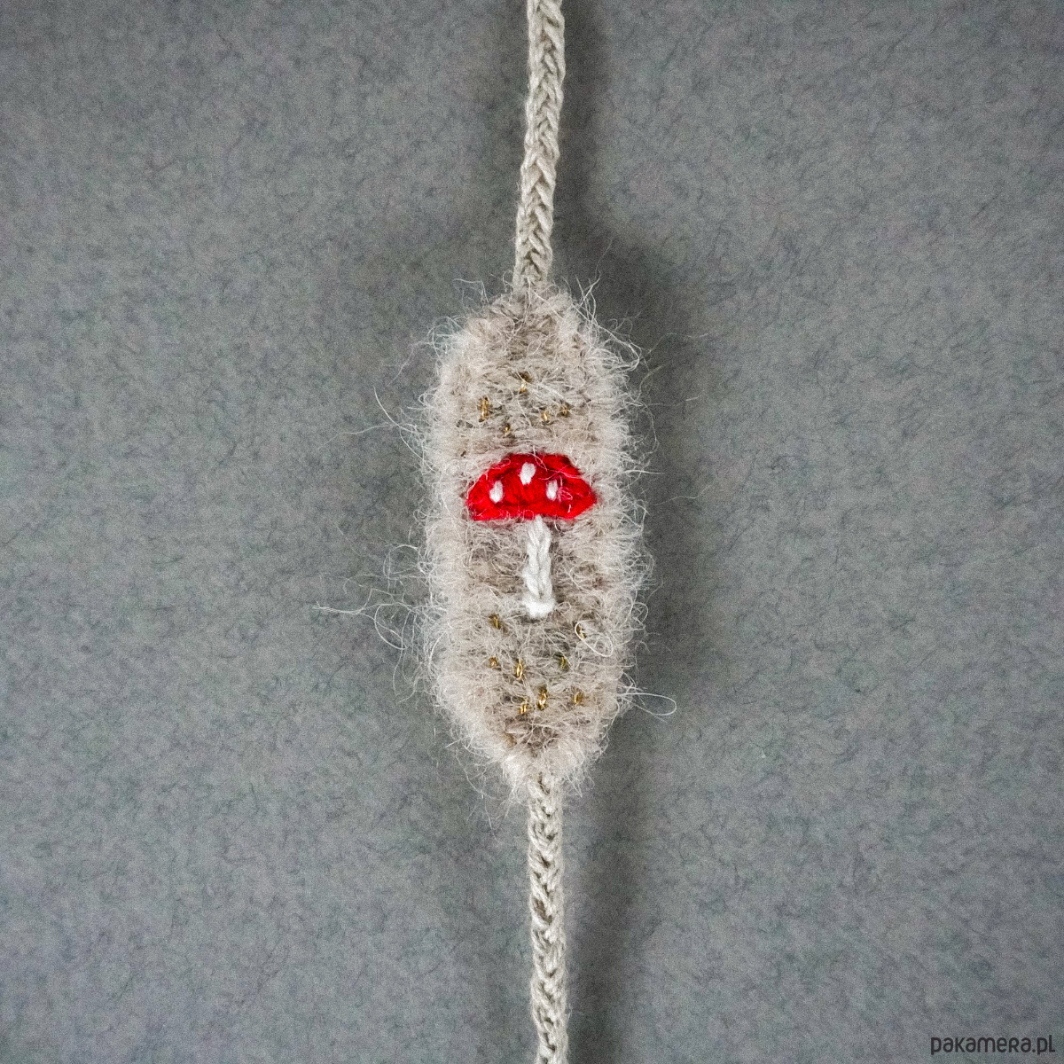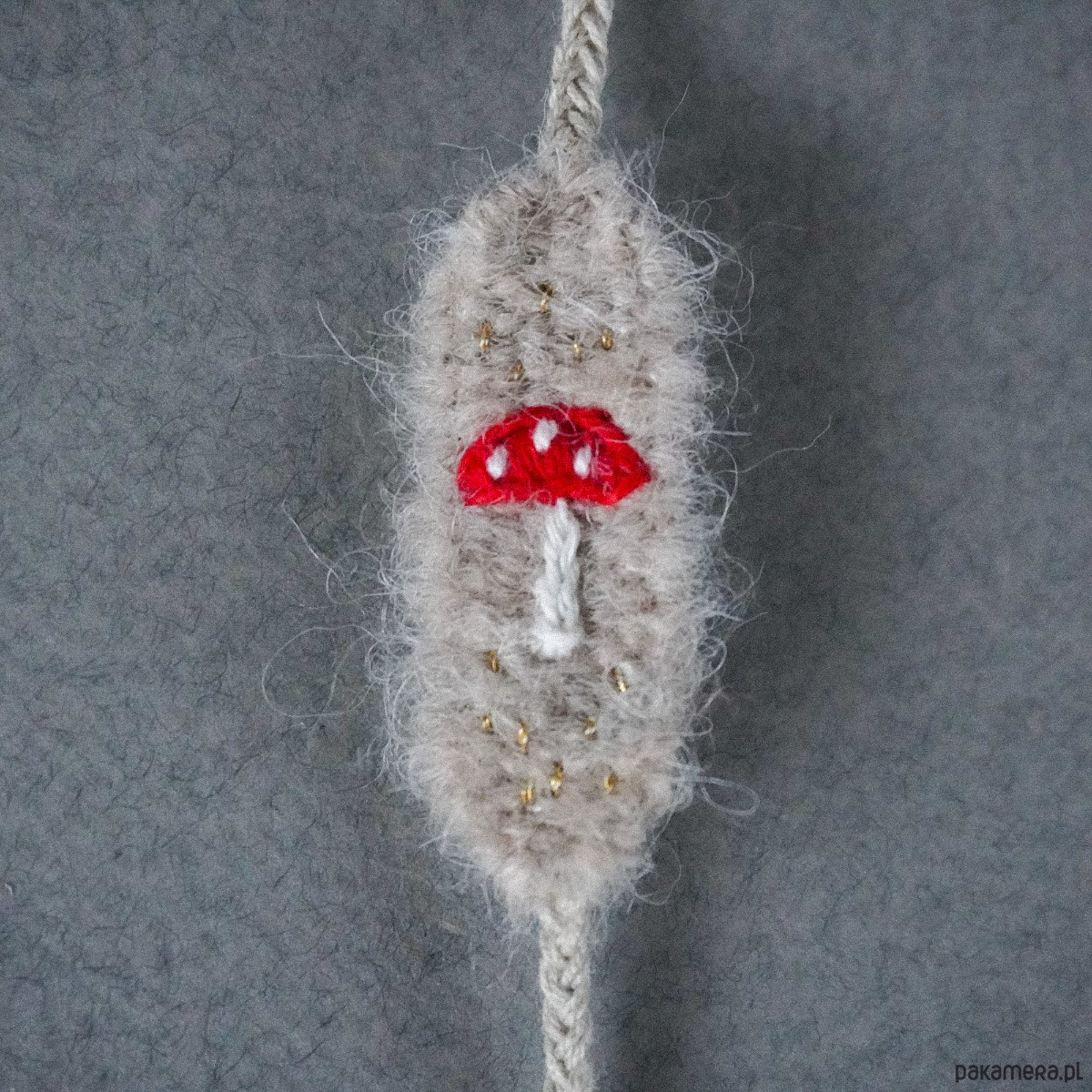 Bransoletka tkana i haftowana ręcznie - muchomorek