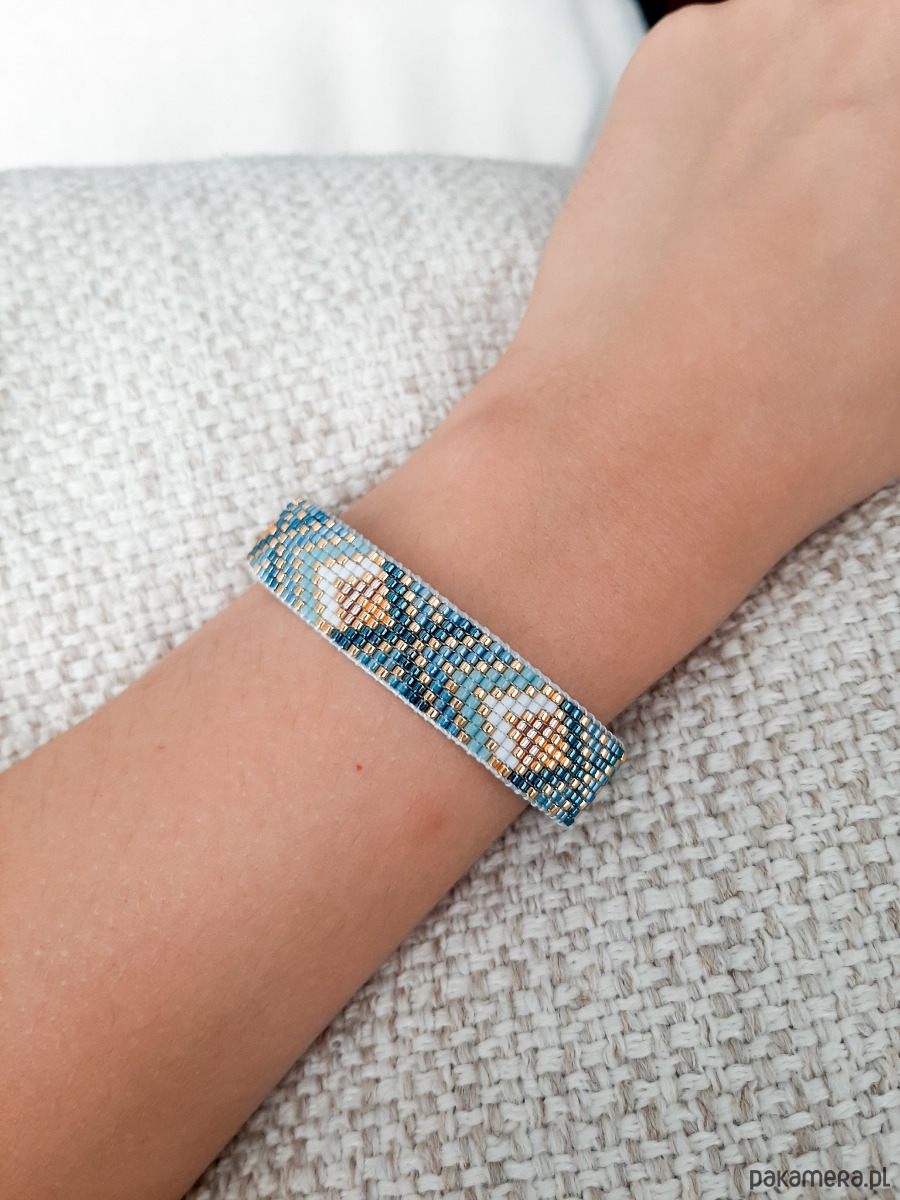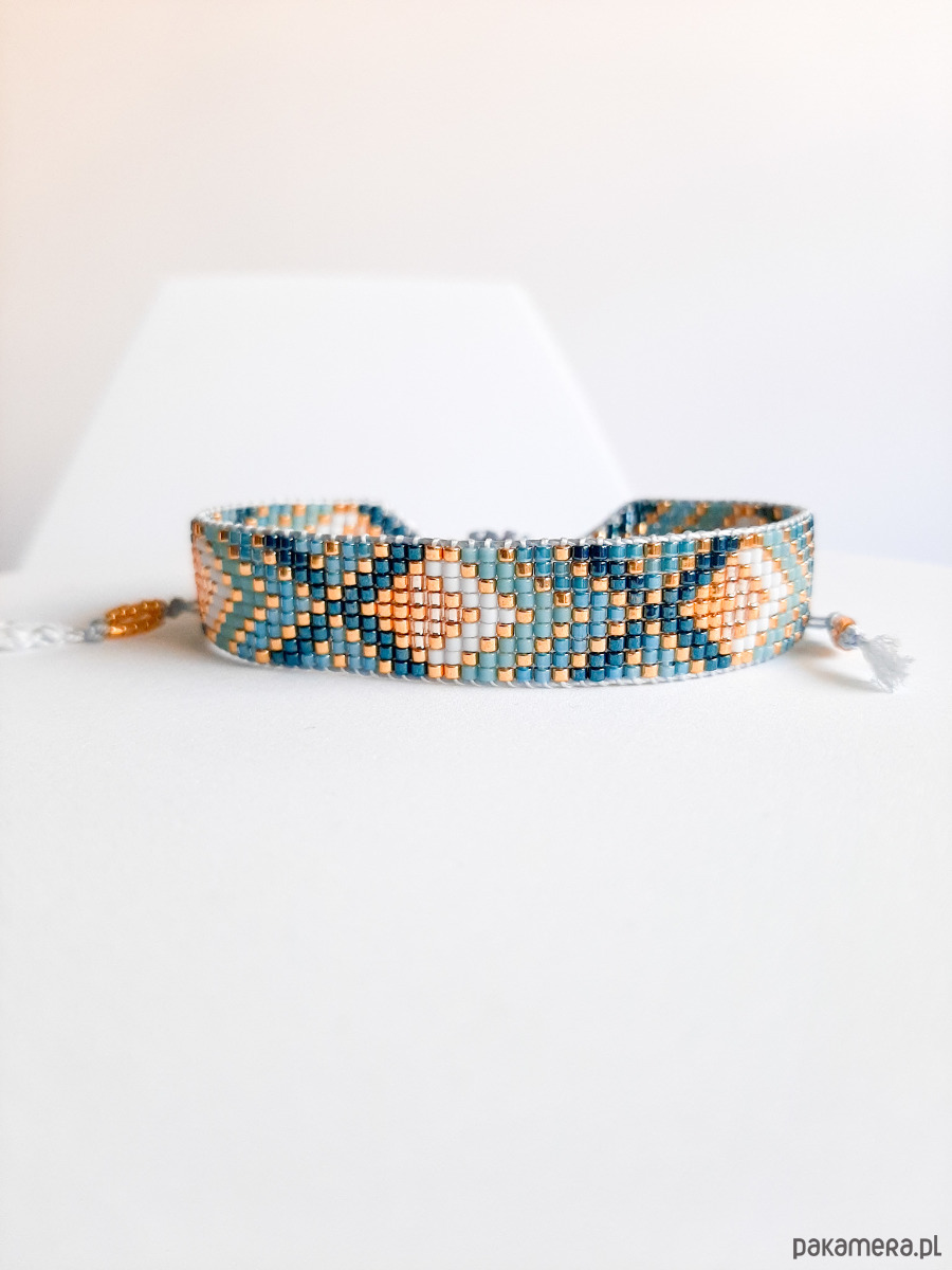 Bransoletka tkana ręcznie na krośnie. Wykonana z oryginalnych japońskich koralików Miyuki.