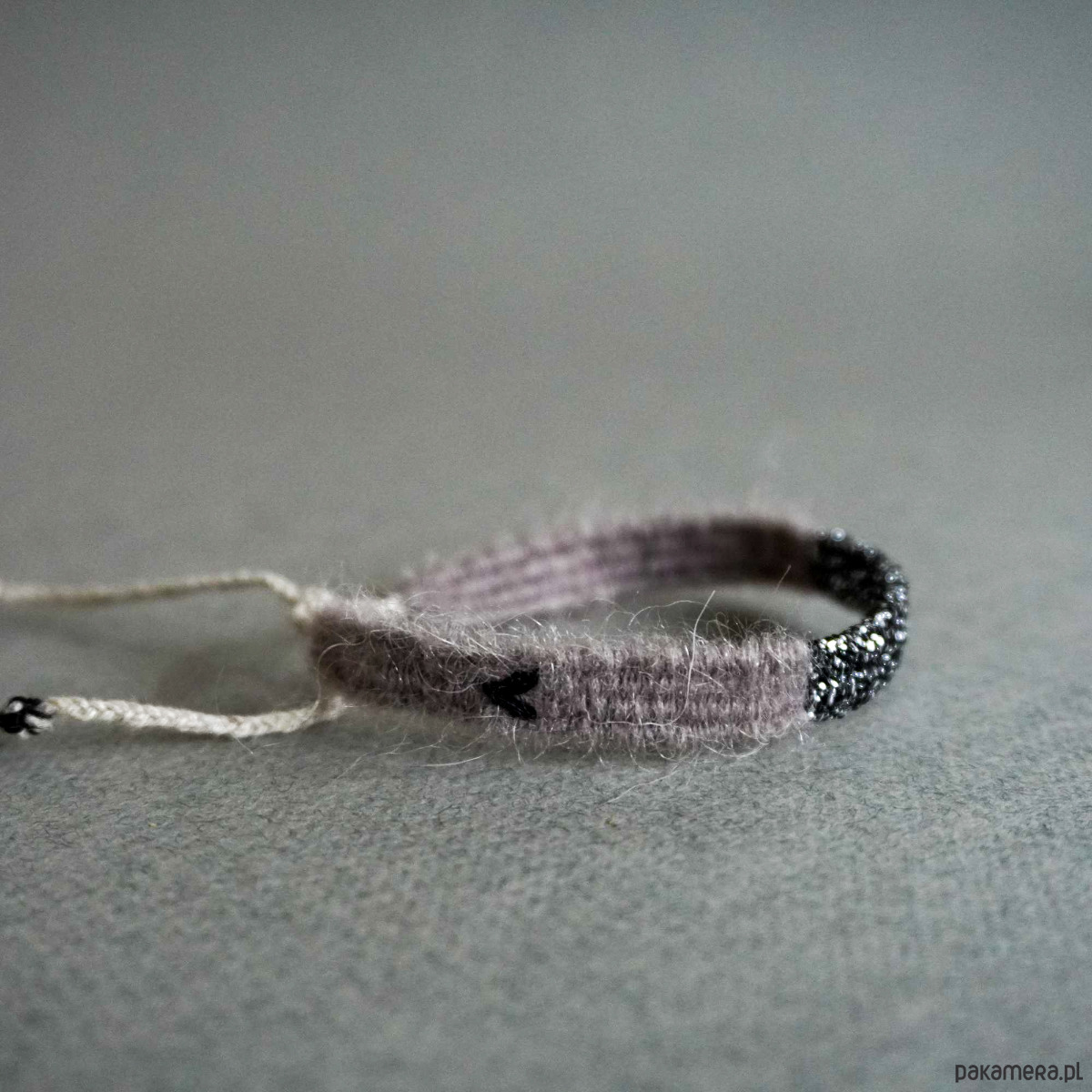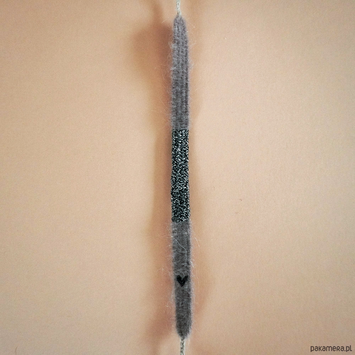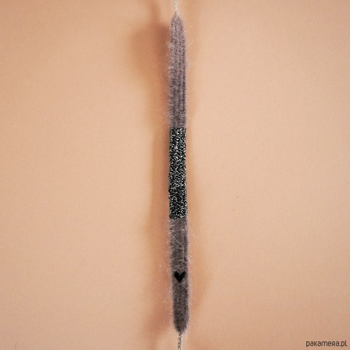 Wąska bransoletka moher i błysk z haftowanym serduszkiem