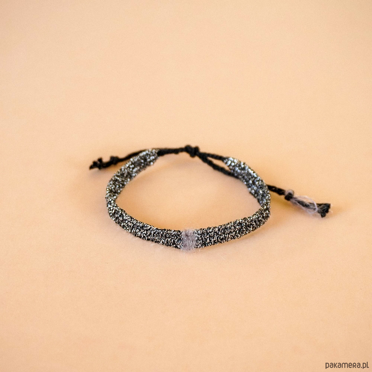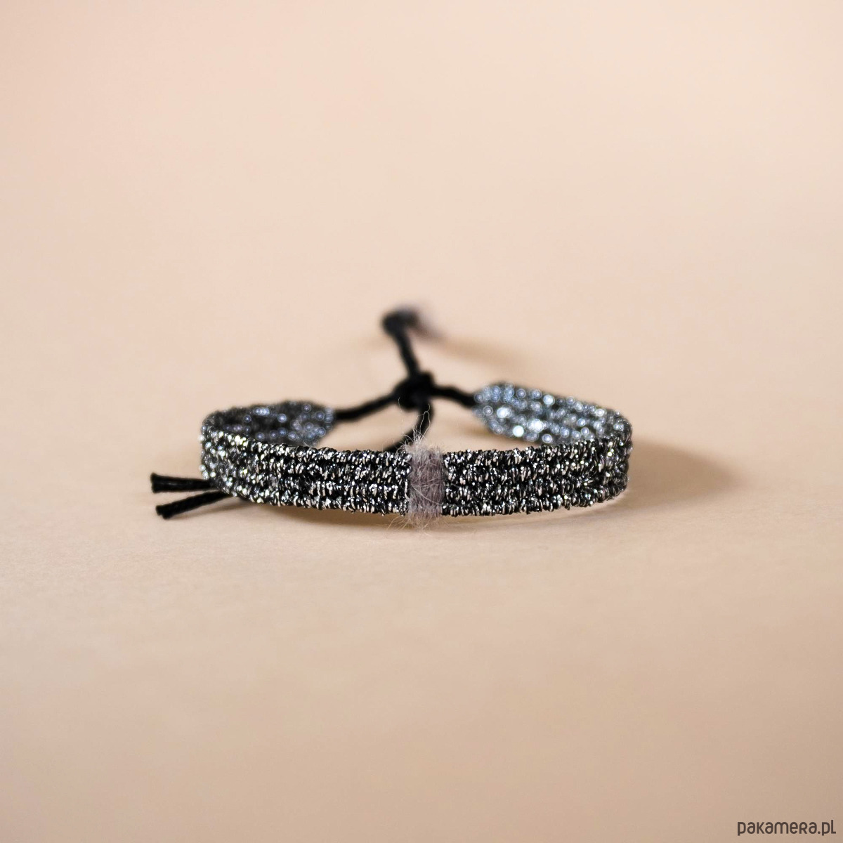 Minimalistyczna bransoletka na sznurku z błyszczącą nicią- Silver & Black