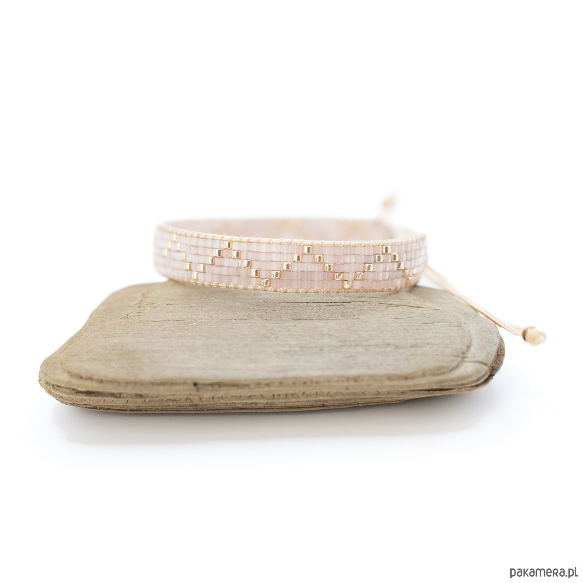 Bransoletka tkana z koralików - pudrowy róż ze złotem
