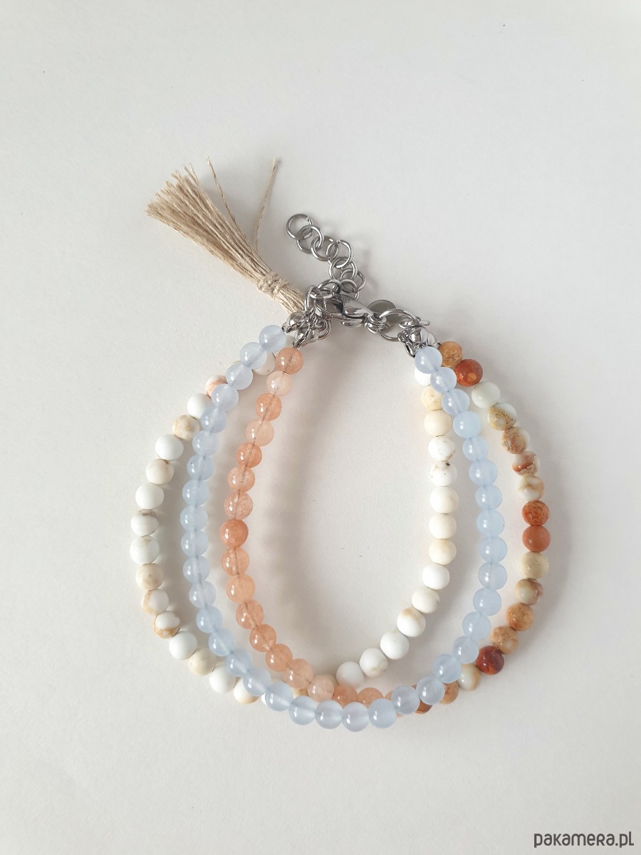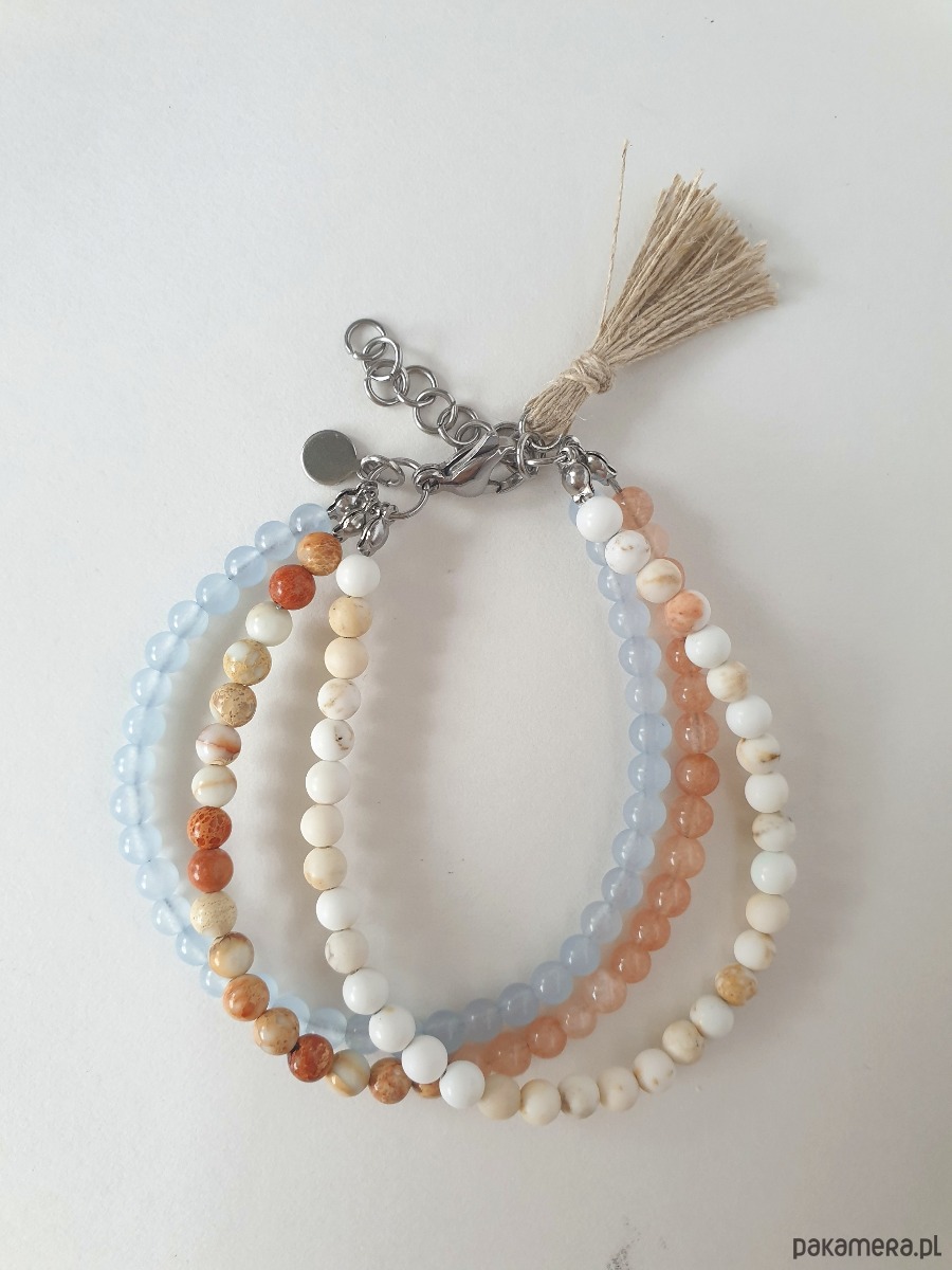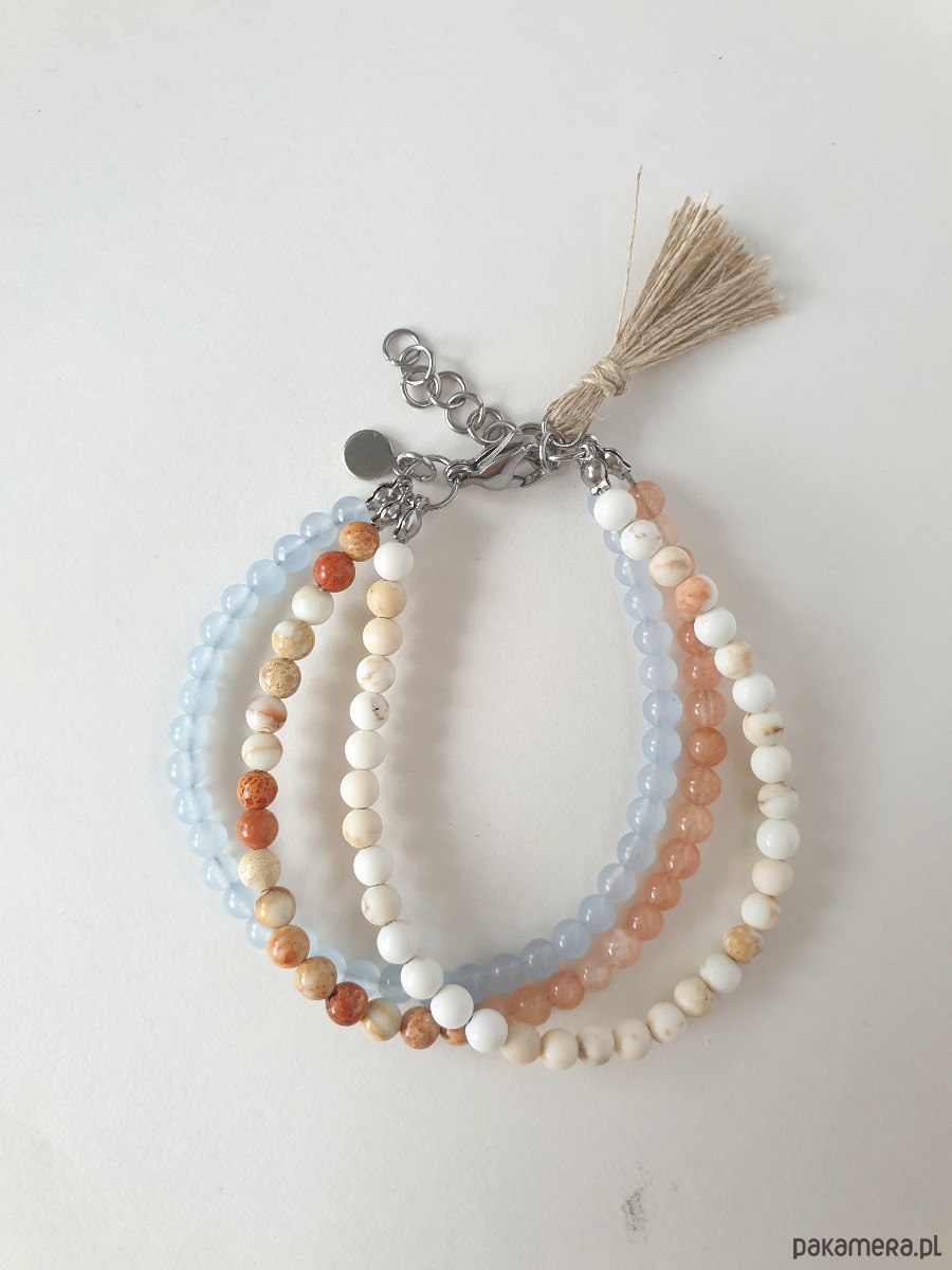 Bransoletka TRIO BOHO ART jadeit, jaspis, howlit, krem, niebieski, beż