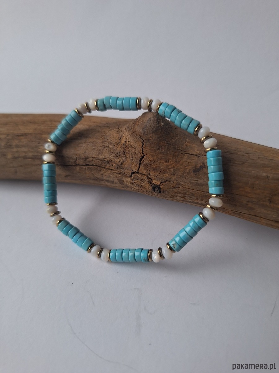 BRANSOLETKA TURKUS MASA PERŁOWA I HEMATYT