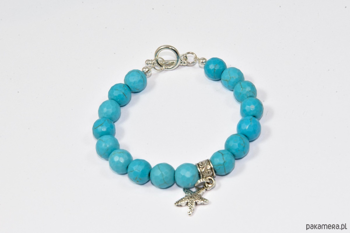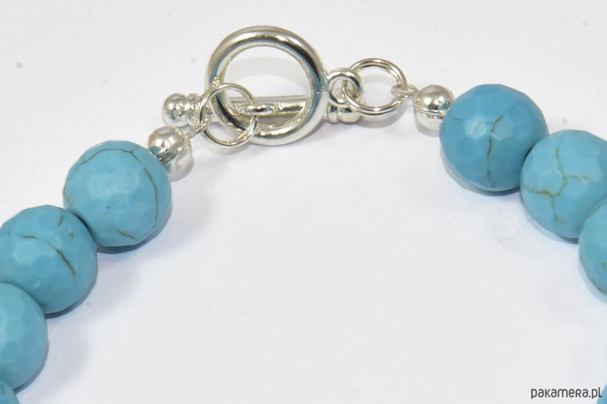 Bransoletka z kamieni turkusa delikatna i elegancka. Wyjątkowy kolor z drobną siateczką niepowtarzalnych wzorów sprawia, że jest ponad czasowa. Warto ją mieć, bo naprawdę pięknie wygląda, szczególnie do czerni, brązu i czerwieni.