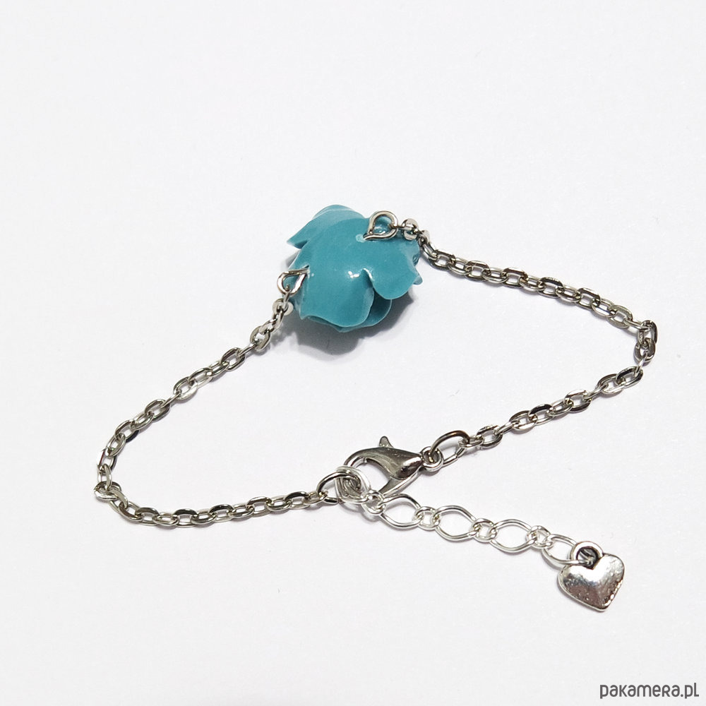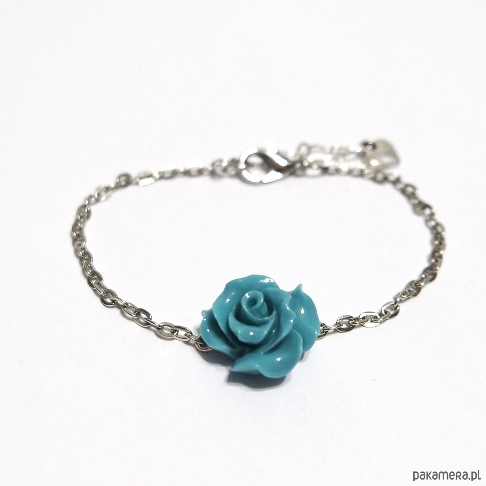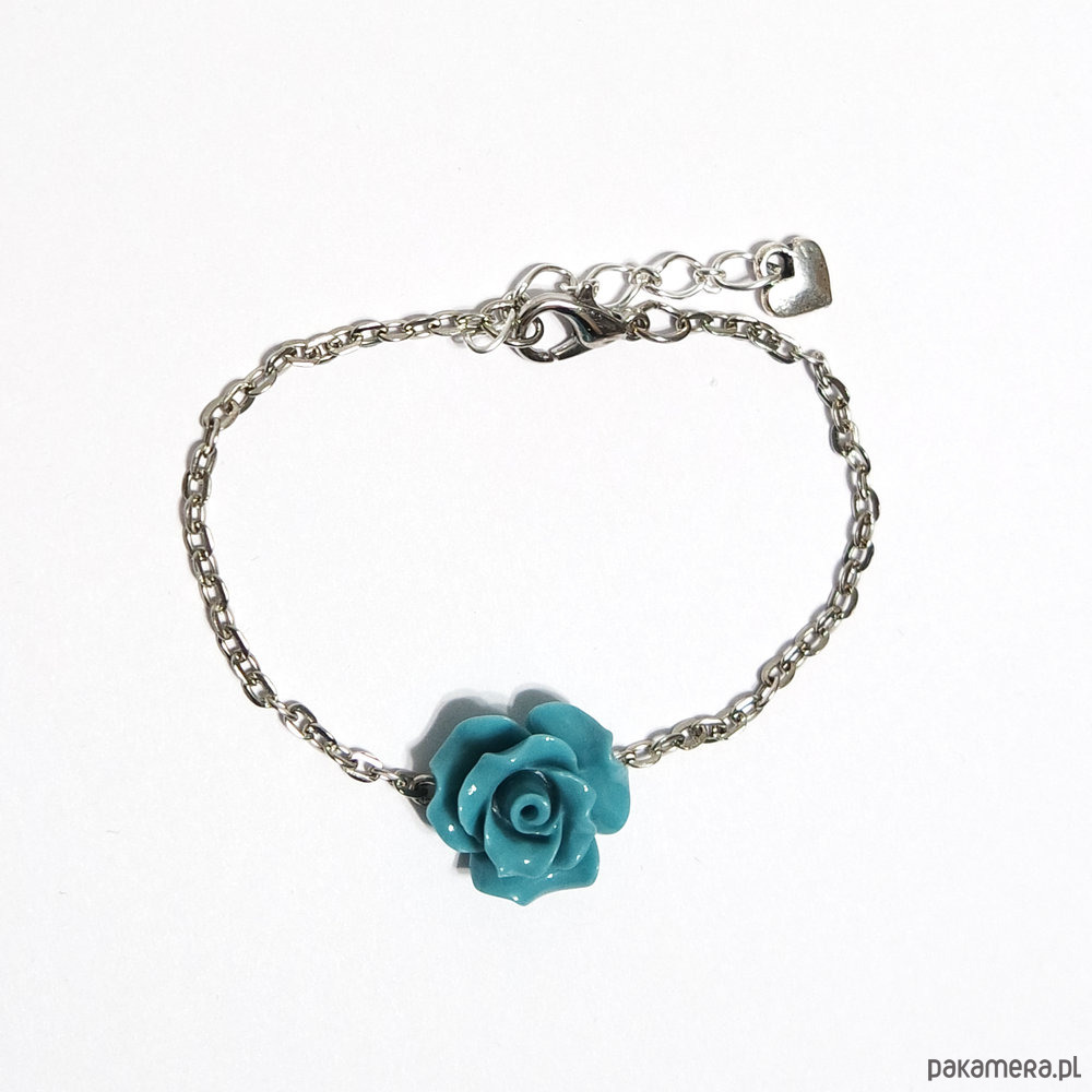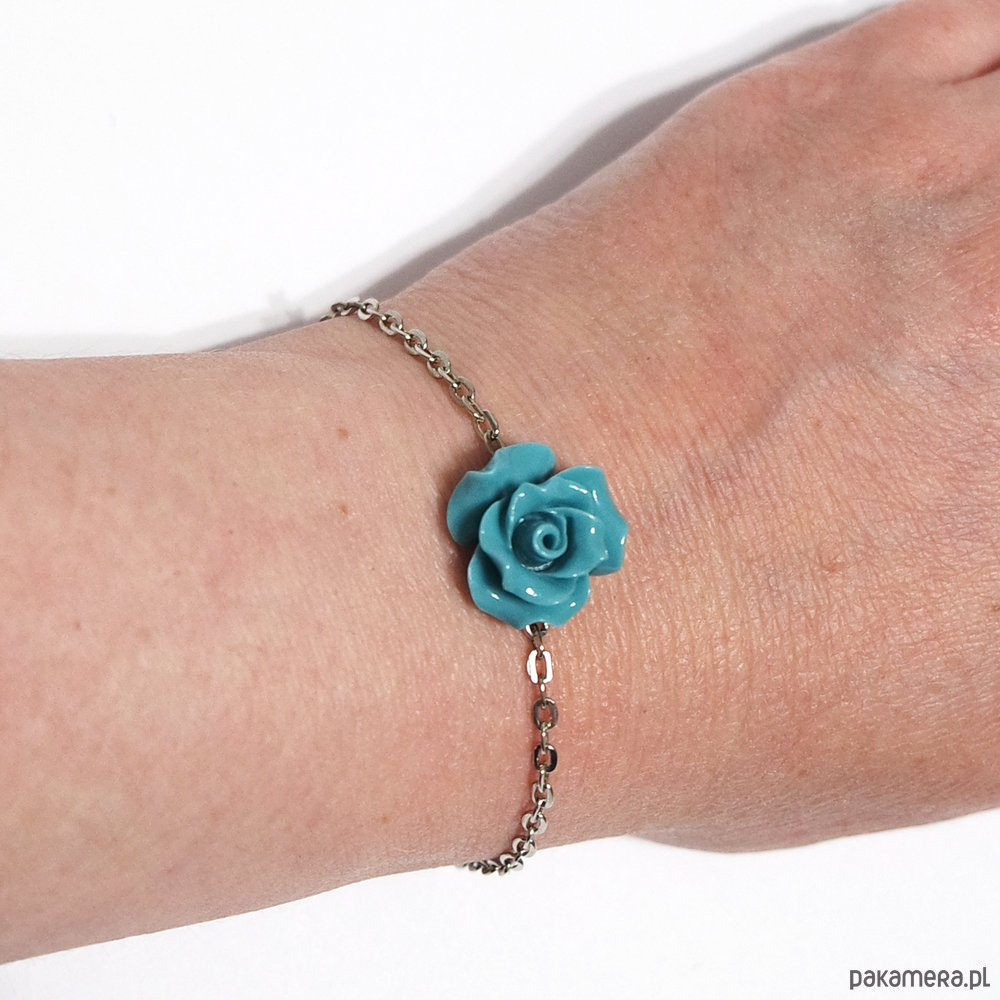 Długość bransoletki ok.16 cm plus przedłużka. Średnica róży w bransoletce ok.1,5 cm.