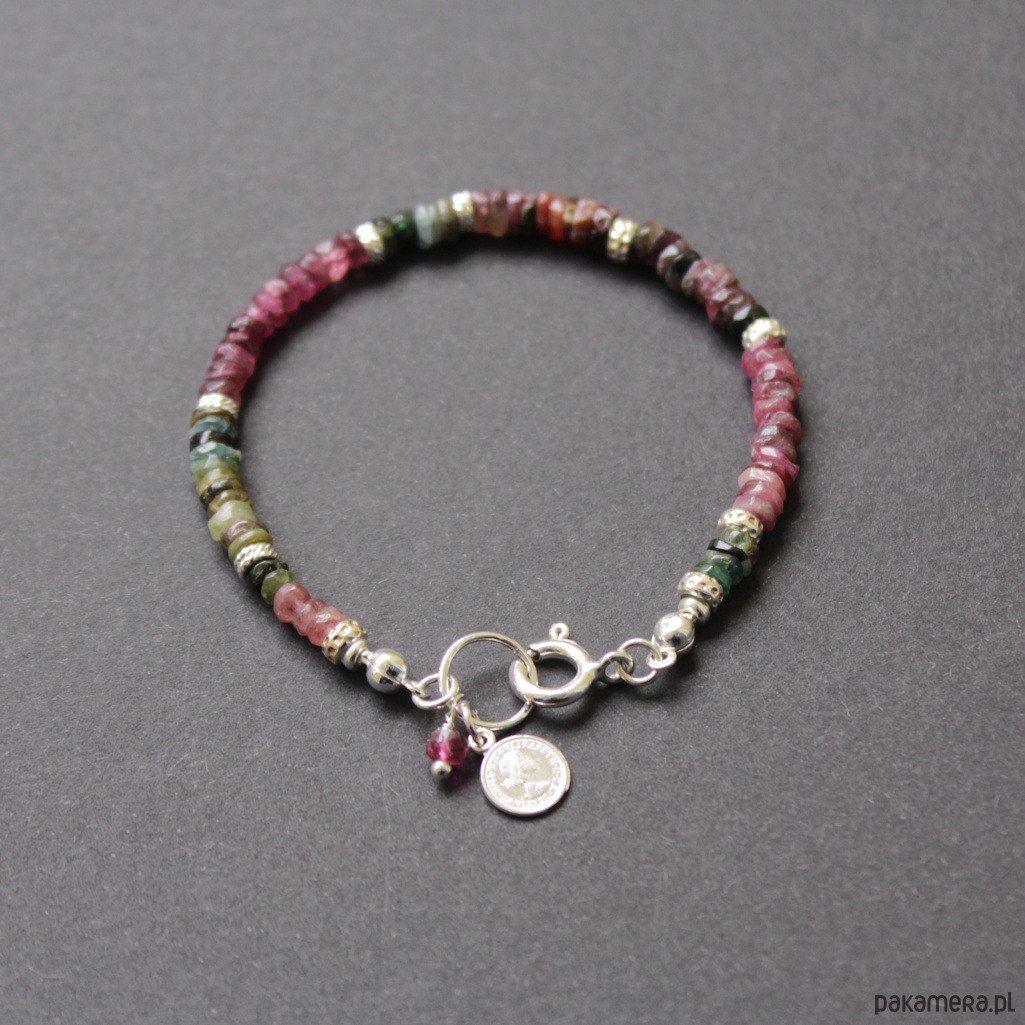 Bransoletka została wykonana ze srebra próby 925 oraz kolorowych plasterków turmalinów wielkości 0,25-0,35 cm.