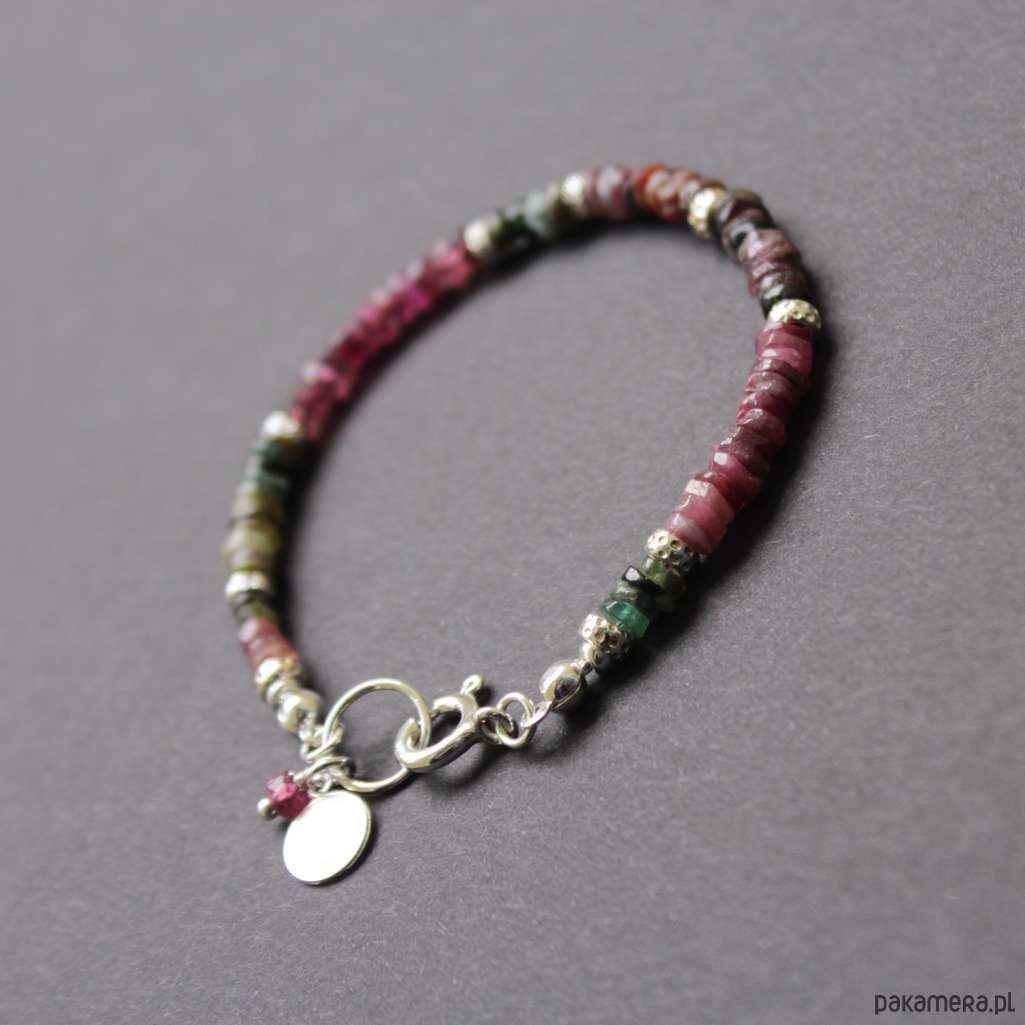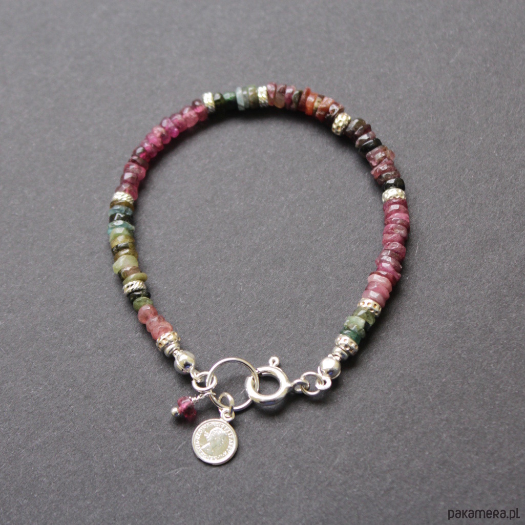 Bransoletka została wykonana ze srebra próby 925 oraz kolorowych plasterków turmalinów wielkości 0,25-0,35 cm.