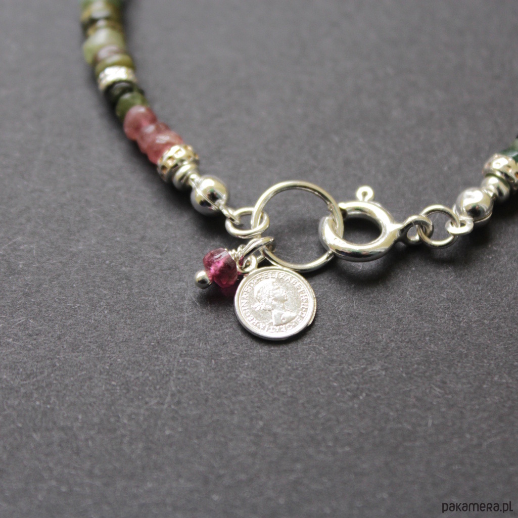 Bransoletka została wykonana ze srebra próby 925 oraz kolorowych plasterków turmalinów wielkości 0,25-0,35 cm.