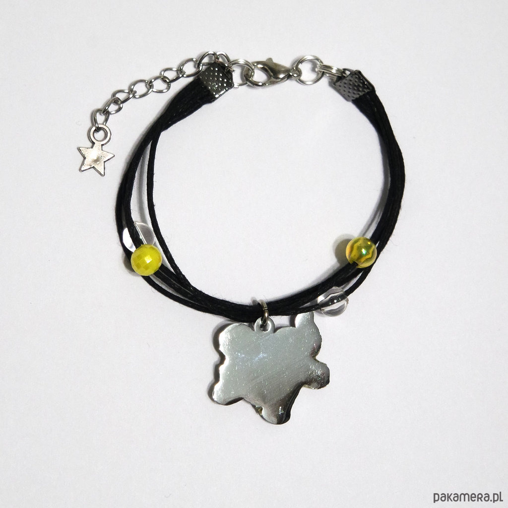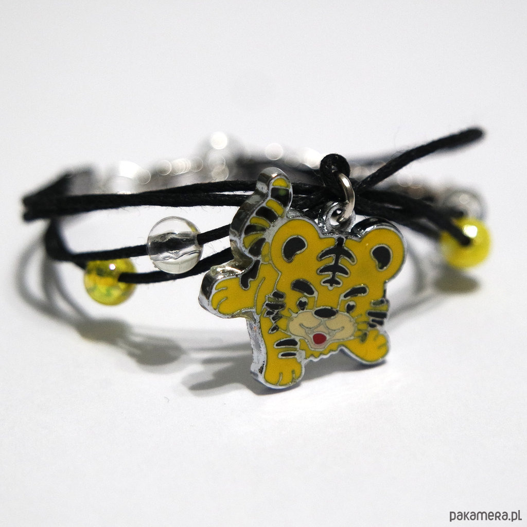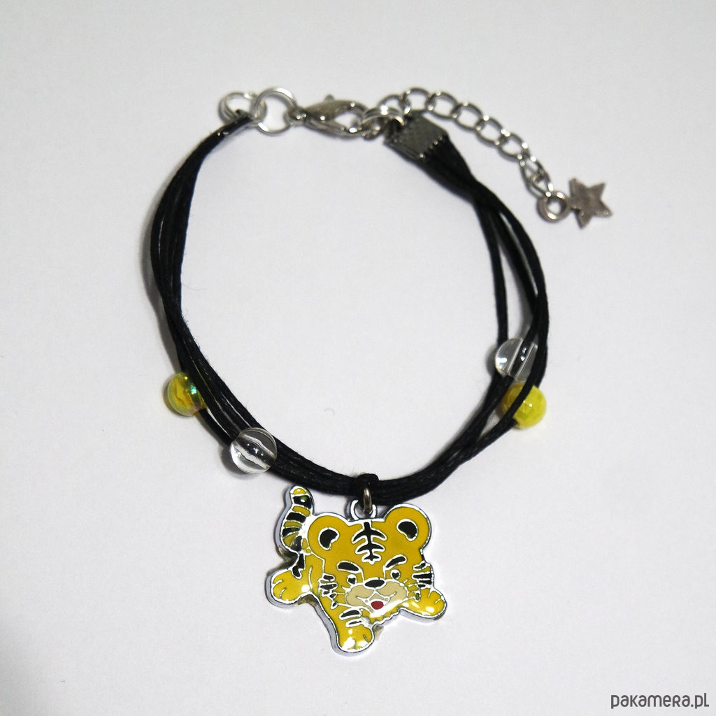 Bransoletka wykonana jest z woskowanych sznureczków i koralików.