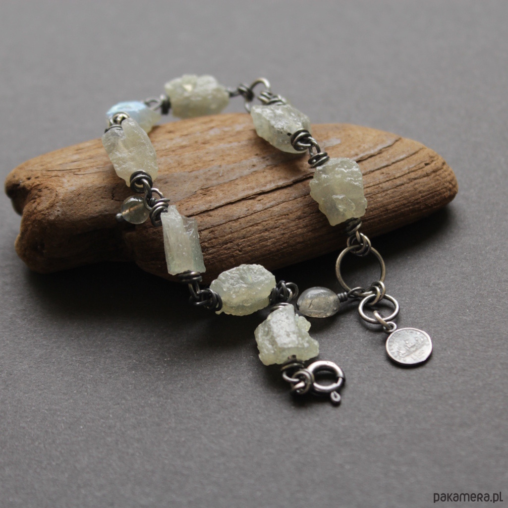 Bransoletka UNIKAT wykonana została z oksydowanego srebra próby 925 oraz surowych bryłek jsnych labradorytów wielkości 0,7-1,1 cm.