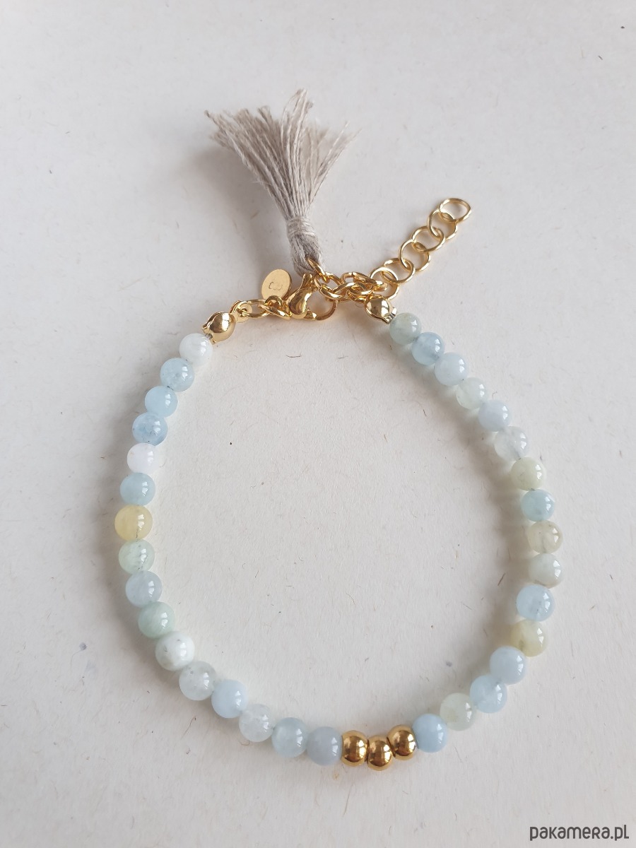 Bransoletka UNO akwamaryn, lniany chwost