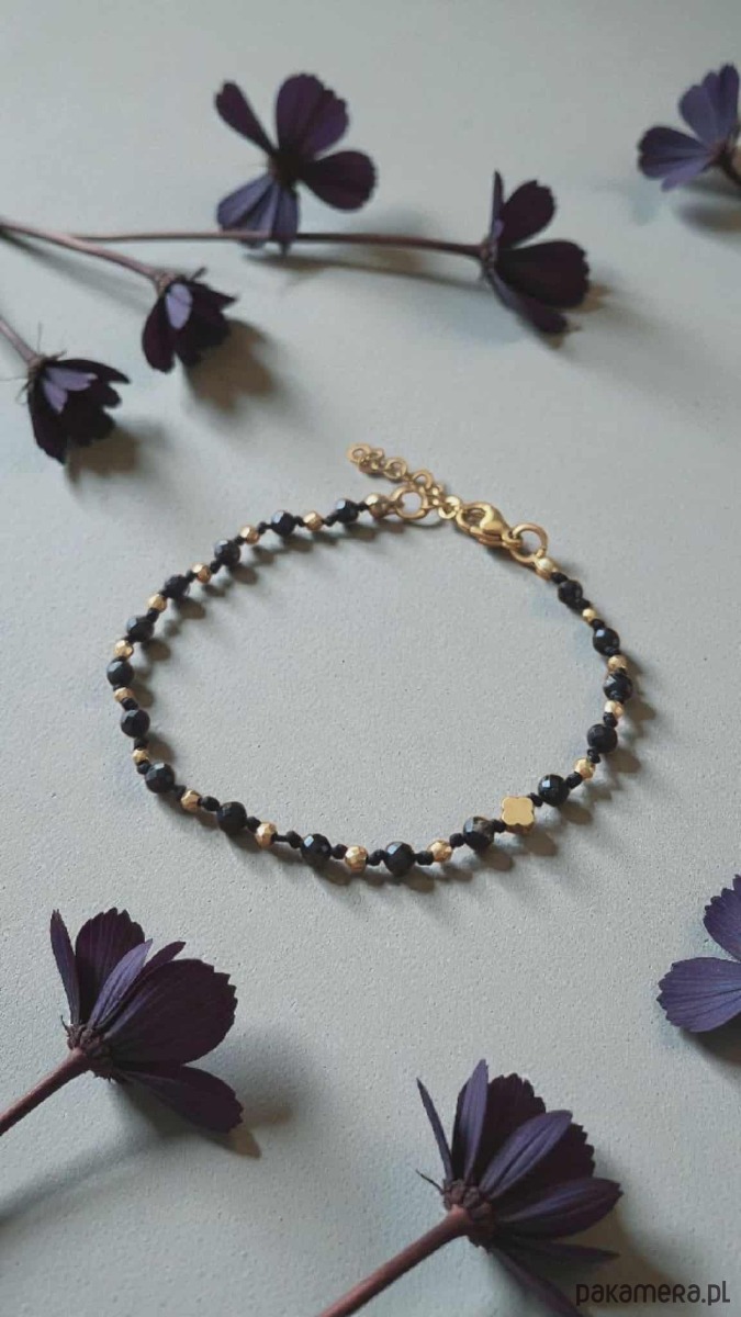 Bransoletka została ozdobiona kulkami z hematytu w złotym kolorze.