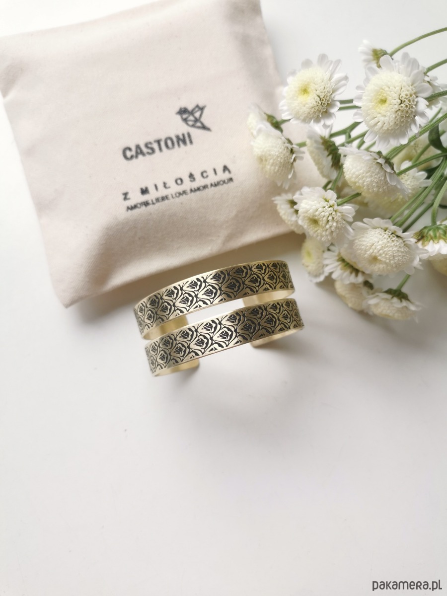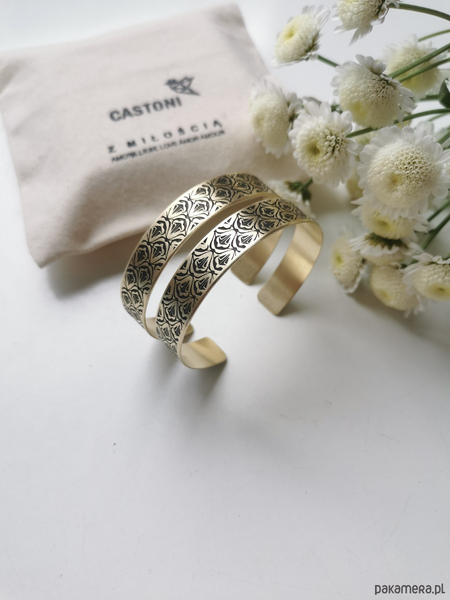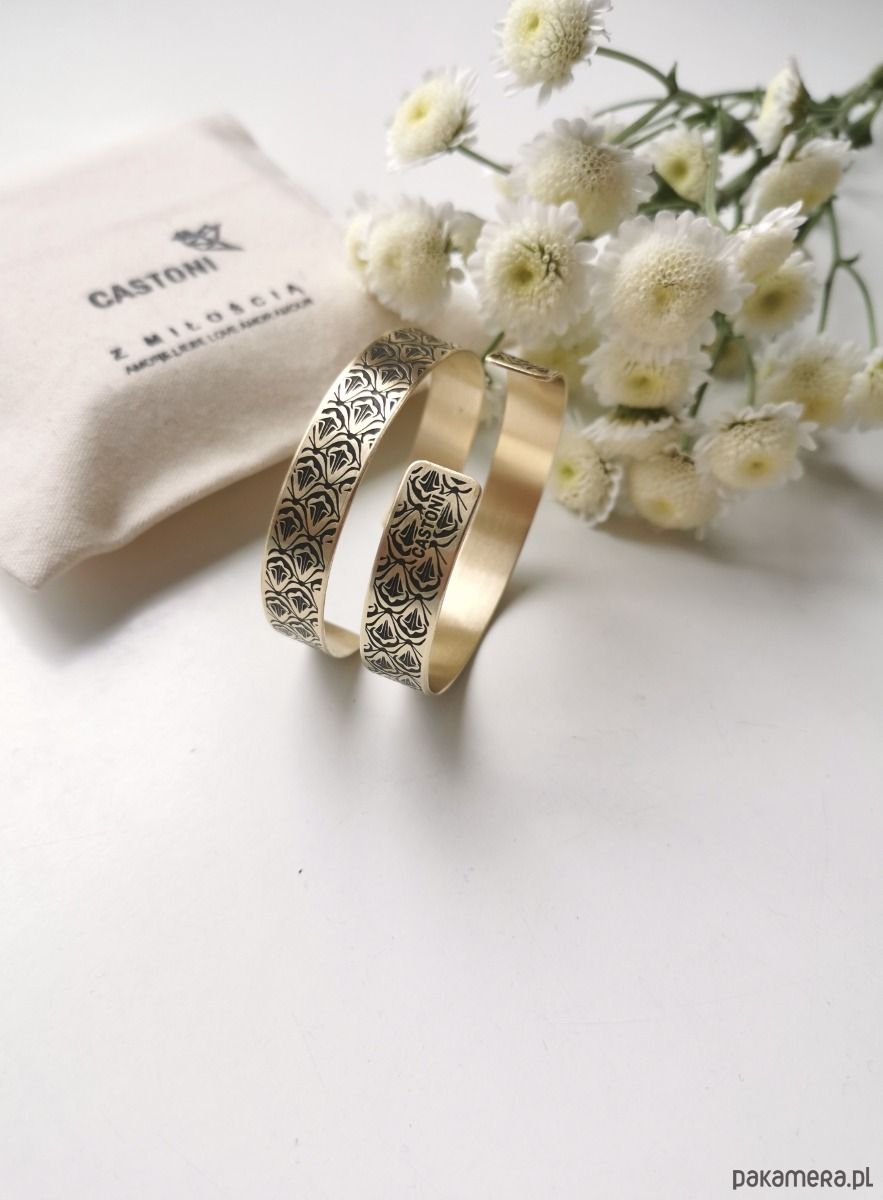 Nowa bransoletka ma kolor jasno złoty, wraz z upływem czasu mosiądz nabiera szlachetnej barwy starego złota.
