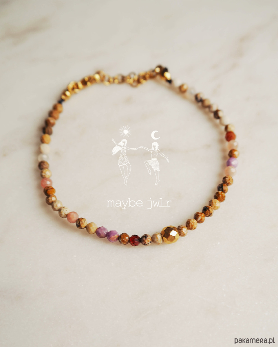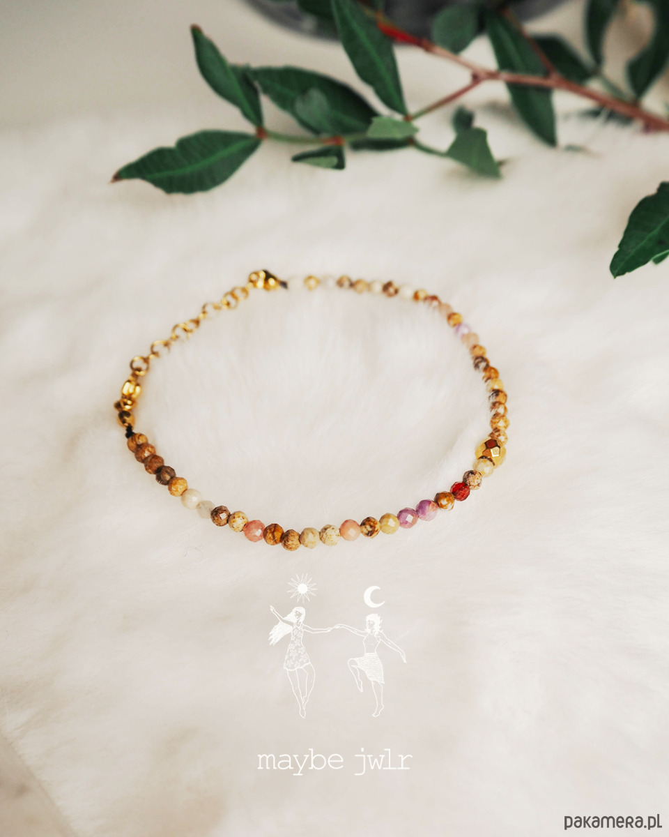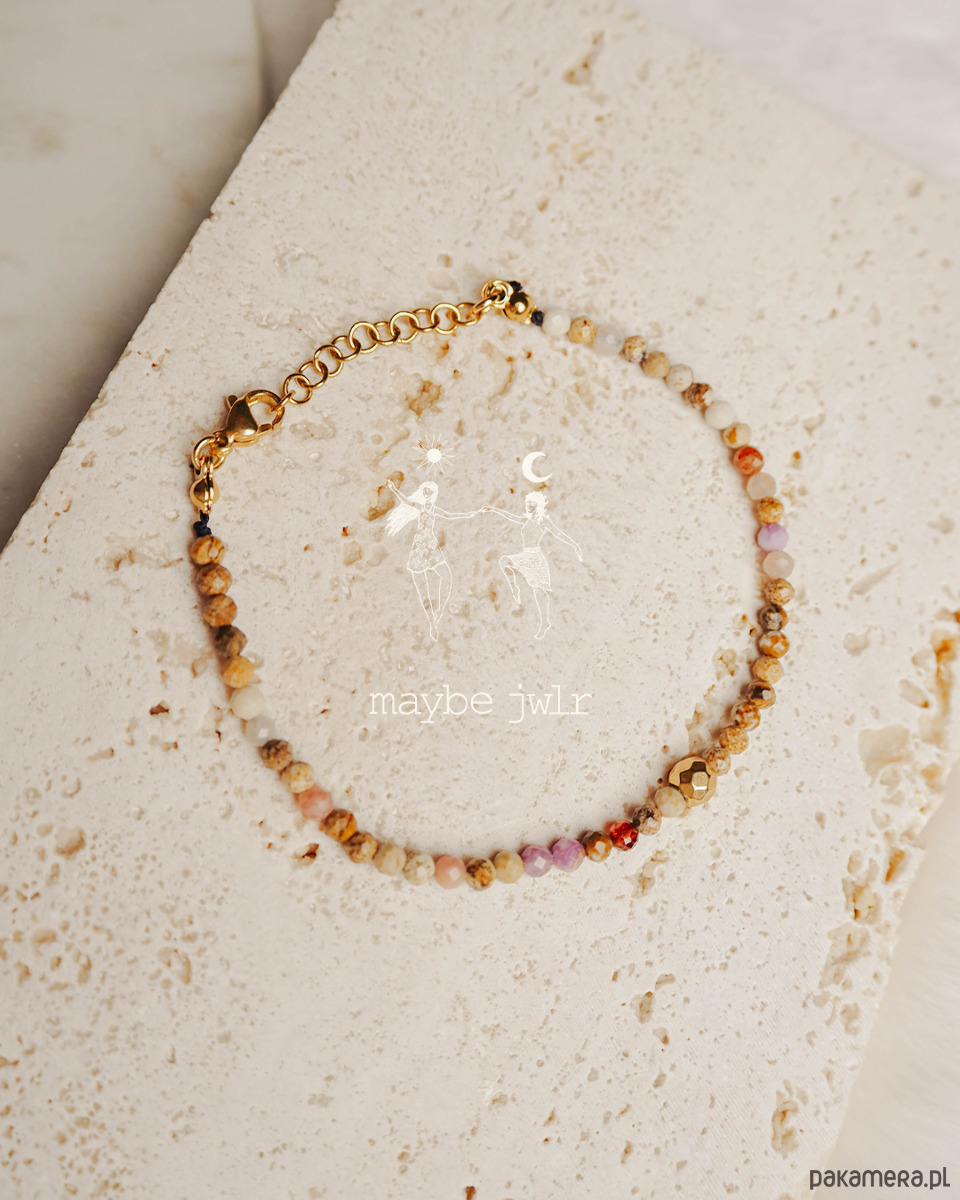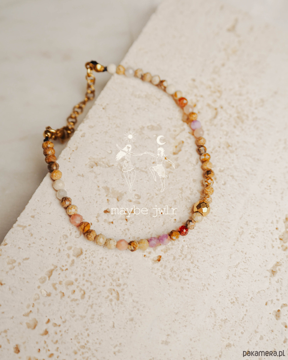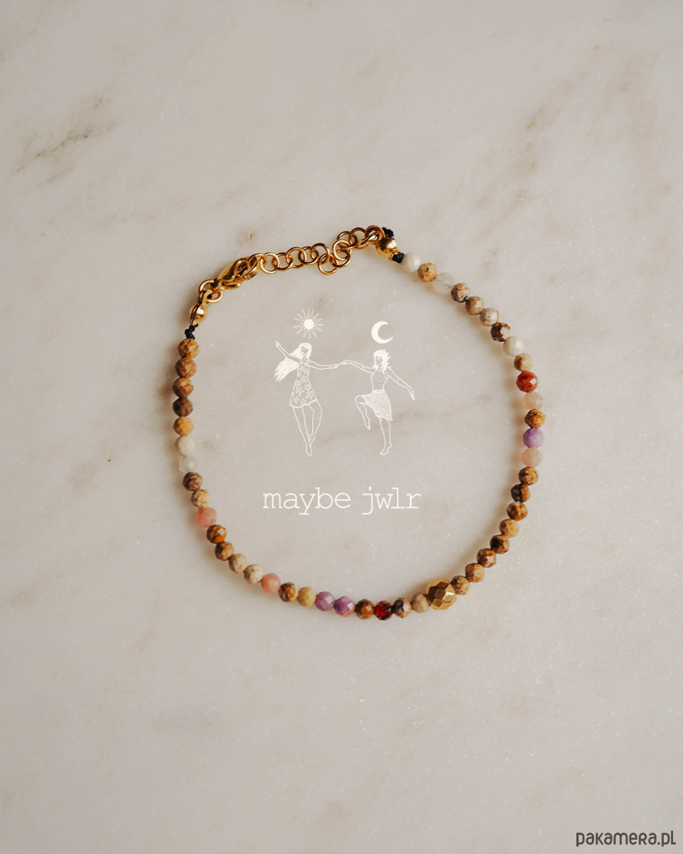 Ta ręcznie wykonana bransoletka z naturalnych kamieni jaspisu krajobrazowego zachwyca swoim minimalistycznym, prostym designem i subtelną paletą beżowo-brązowych, ziemistych odcieni. Drobne kamienie, oszlifowane na połysk, delikatnie odbijają światło, nadając biżuterii naturalnego blasku i harmonii.