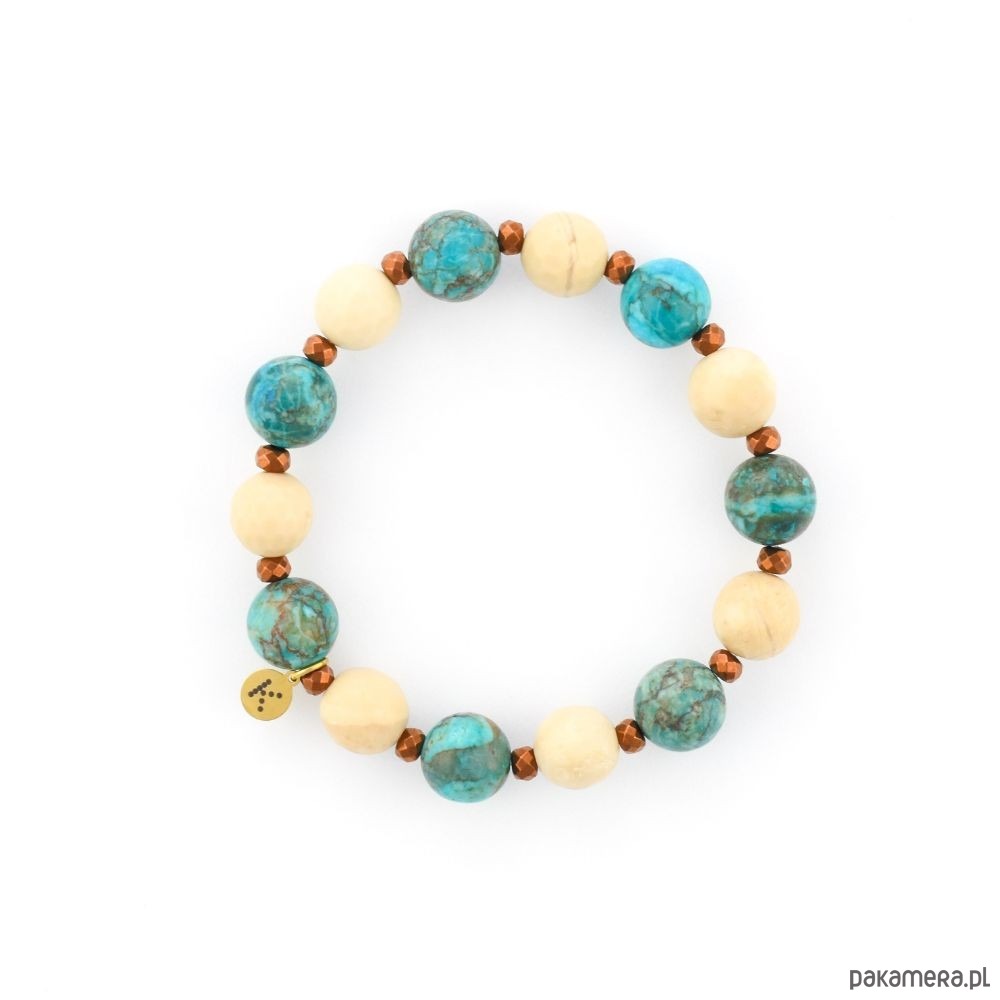 HEMATYT to kamień wojowników. Silnie oczyszcza krew. Budzi radość do życia, dodaje odwagi i wiary we własne umiejętności.Turkus to kamień podróżników. Pełen energii talizman, wzmacniający odwagę i intuicję podróżujących oraz sprzyjających nowym przyjaźniom.